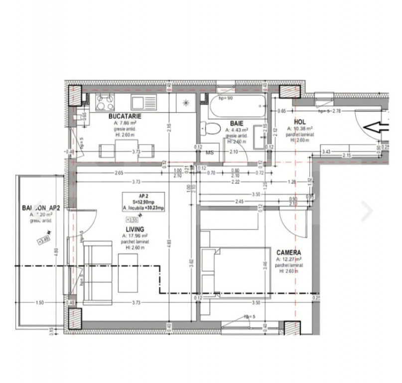 Suprafața utilă 52 m²