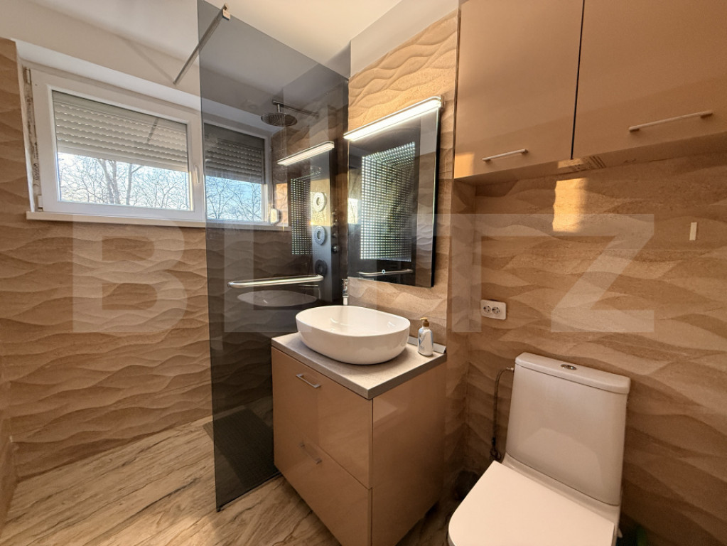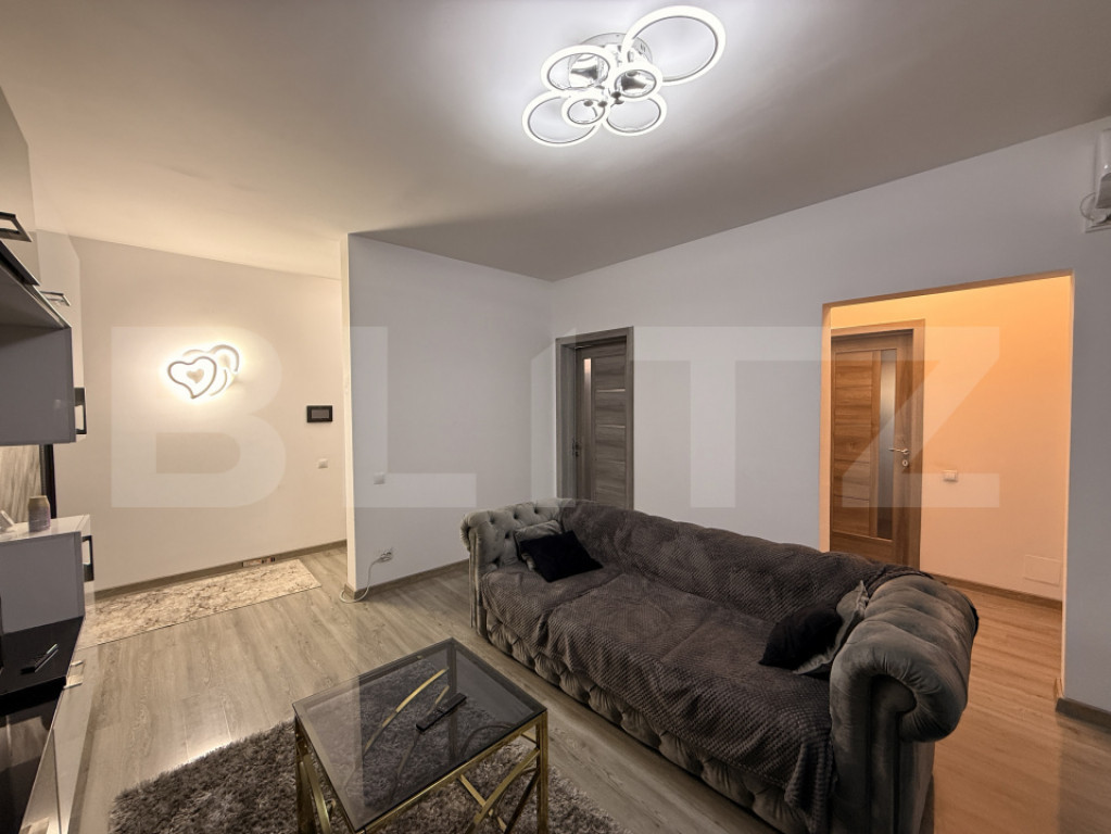 Blitz propune spre vânzare un apartament de 2 camere, situat la parterul unui bloc cu 4 niveluri, parte dintr-un ansamblu rezidențial construit în 2022, în spatele Parcului Nicolae Romanescu. Imobilul are o suprafață utilă de 53 mp și se bucură de o terasă cu curte însumând o suprafață de 59 mp și de loc de parcare în incinta ansamblului. De asemenea, apartamentul este complet mobilat și utilat modern, cu toate electrocasnicile noi, centrală termică de gaz, aparat de aer condiționat, fiind astfel gata pentru mutare sau închiriere. Compartimentarea este următoarea: hol la intrare din care se trece în zona de living de unde mai departe se accesează bucătăria separată și un hol de unde se poate trece în baie și în dormitor. Un mare plus al acestui apartament îl reprezintă curtea de aproape 60 mp, care se poate accesa atât din living, cât și din bucătărie și dormitor. Totodată, faptul că avem și un loc de parcare, care la fel ca și curtea se află trecut în acte, aduce un plus de atractivitate. Un alt atu important pe care îl are acest apartament este reprezentant de poziția sa, foarte aproape de intrarea din spate a parcului Romanescu (1-2 minute de mers pe jos), hypermarketuri, cartierele Veteranilor, Romanești și 1 Mai. Vă aștept la vizionare pentru mai multe detalii și a decide dacă este locuința pe care o căutați sau următoarea investiție imobiliară. Cod ofertă / ID BLITZ: P167090 Id intern: P167090