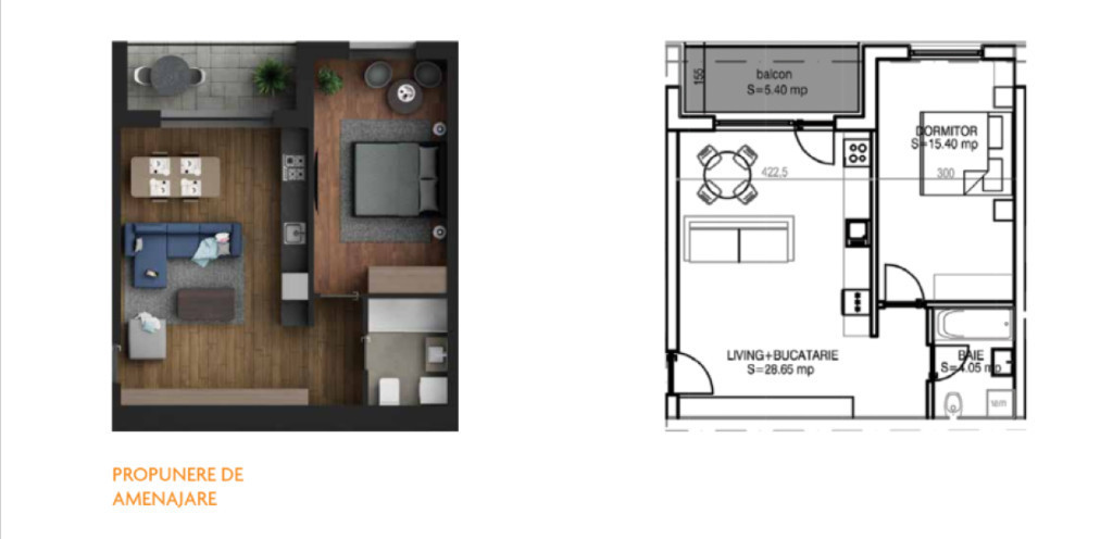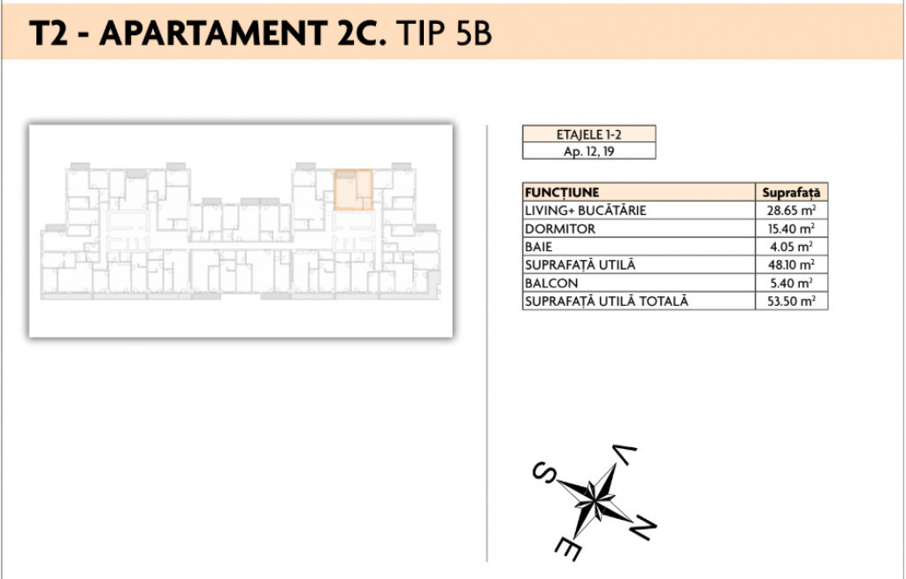 Suprafața utilă 54 m²