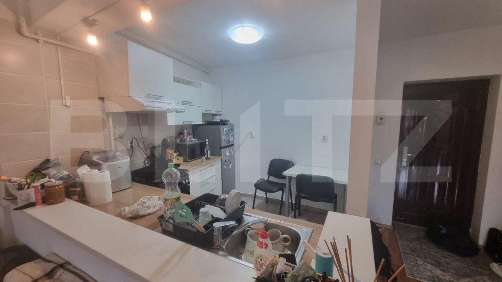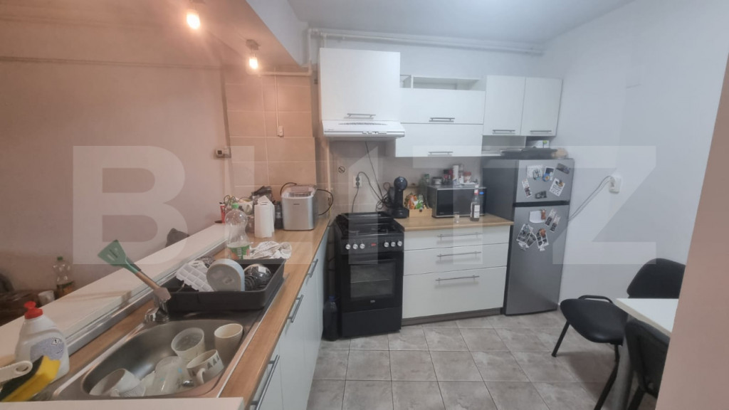 Blitz va propune un apartament cu 2 camere, situat în cartierul Mănăștur, într-o zonă cu randament ridicat pentru închiriere. Suprafața utilă este de 54 mp, la care se adaugă o terasă de 7 mp. Orientare vestică, lumină naturală bună. Imobil construit în 2010, izolat termic. Scară modernă și spațioasă, dotată cu două lifturi inteligente. Centrală termică proprie, instalată în 2016. Cheltuieli de întreținere reduse. Apartamentul se vinde mobilat și utilat complet. Posibilitate de achiziție parcare subterană, separat. Poate fi achiziționat cu preluare de chiriași. Vecini liniștiți, comunitate bine organizată. Ideal pentru investiție sau locuință proprie. Cod ofertă / ID BLITZ: P159174 Id intern: P159174