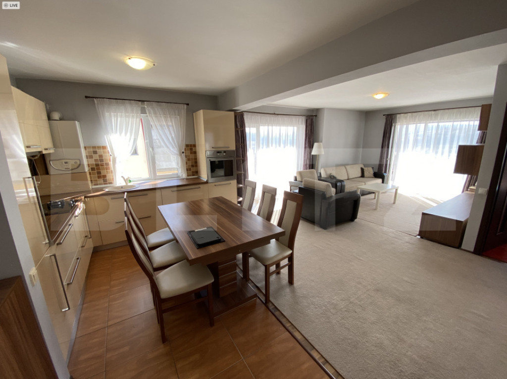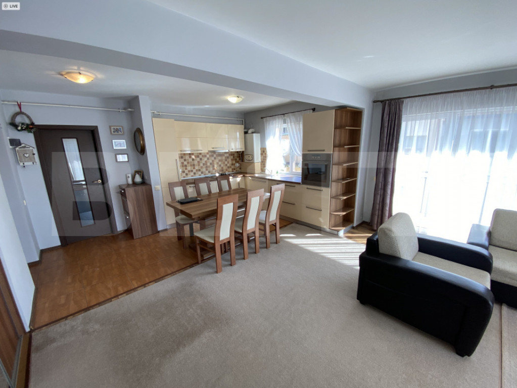 Vă propunem spre vânzare un apartament cu 2 camere, situat într-un imobil construit în anul 2009, în Baciu, zona Regal. Apartamentul are o suprafață utilă de 55 mp și este poziționat la etajul 3 din 4, într-un bloc izolat termic, dotat cu interfon. Compartimentare: Living cu bucătărie open-space Dormitor Baie cu geam Hol Balcon de 12 mp, cu 2 iesiri de acces din zona de living Orientarea sud-estică oferă lumină naturală pe parcursul zilei, iar compartimentarea este practică și eficientă. Dotări: Centrală termică proprie Încălzire prin calorifere Sistem suplimentar de încălzire electrică prin pardoseală în baie și bucătărie Mobilier modern Dressing generos cu uși glisante Se vinde complet mobilat și utilat, conform fotografiilor de prezentare Imobilul este ideal atât pentru locuință proprie, cât și pentru investiție, având predare imediată și documentație cadastrală disponibilă. Cod ofertă / ID BLITZ: P164989 Id intern: P164989