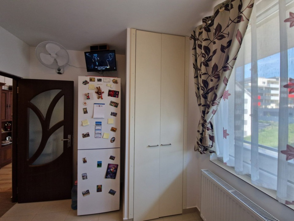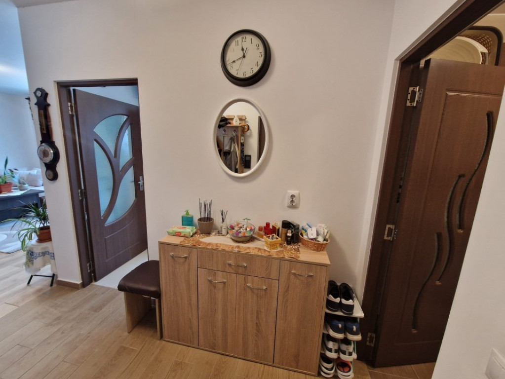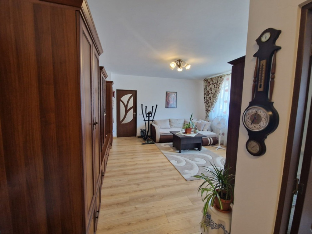 PF vând apartament 2 camere semidecomandat (posibilitate decomandare) cu finisaje moderne și materiale de calitate superioară – Baciu, Str. Șoimului, nr. 3 - Suprafață: 55 mp + terasă 11 ml (8 mp) + pod utilizabil - Bloc: nou, 2019, izolat termic, etaj 3/3, fără vecini deasupra - Acoperiș: lemn masiv și tablă + pod utilizabil - Orientare: Est (rasarit) (soare dimineața) Compartimentare și dotări: - Nemobilat și neutilat (mobilare și utilare opțional, contra cost, se discută la vizionare) - Bucătărie separată cu debara - Baie cu cadă și rafturi multiple din faianță - Imobil liber de sarcini, ultrafinisat modern: gresie, faianță, parchet de 12 mm, geamuri și uși termopane, uși interioare - Centrală nouă Vaillant Eco Tec Pure – achizitionata in Dec. 2025 (garanție 7 ani, până în 2032) Facilități și proximitate: - Supermarket-uri și magazine: Profi, Lidl, Pepco, Sinsay, Jysk, CBA - Școli și grădinițe - Farmacii și cabinete medicale (inclusiv stomatologice) - Stații autobuz: M31, M32, M34 - Primăria Baciu și biserică ortodoxa - Easybox-uri eMAG/Fanbox - Spălătorii auto și de covoare - Regina Maria, Banca BT, Poșta, benzinăria Petrom - Gară/autogară Cluj Preț: 115.000 € - Parcare subterană opțională: 7.500 € (CF separat) Contact: Vă aștept la vizionare! Sunați-mă cu încredere: Adrian - 0744.709.887