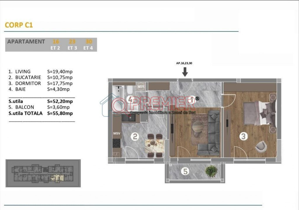 Suprafața utilă 55 m²
