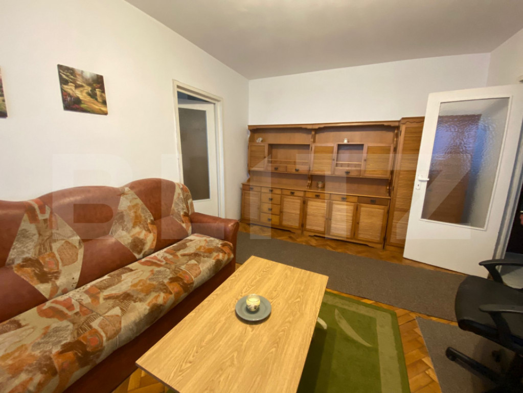 Blitz oferă spre închiriere un apartament complet mobilat, cu o suprafață de 56 mp. Apartament luminos, eficient compartimentat, ideal pentru o persoană sau un cuplu. Este compus dintr-un dormitor cu TV și spații de depozitare, sufragerie, bucătărie separată, baie cu cadă, hol cu spații de depozitare și un balcon închis. Se închiriază complet mobilat și utilat, fiind disponibil pentru mutare imediată. Încălzirea este centralizată (de la stat), fără centrală proprie, iar blocul este dotat cu lift. Condiții: ❌ Nu se acceptă animale de companie ???? Pentru detalii suplimentare și programarea unei vizionări, nu ezitați să ne contactați. Cod ofertă / ID BLITZ: P163019 Id intern: P163019