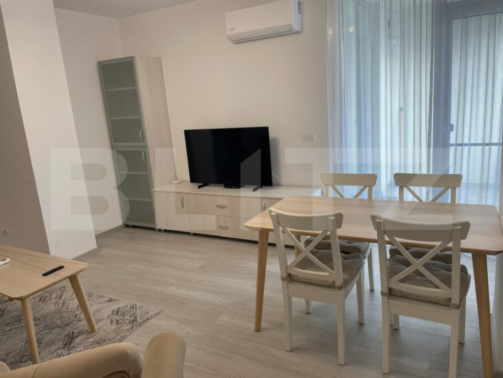 Blitz oferă spre închiriere un apartament complet mobilat, cu o suprafață de 57 mp. Apartament luminos, eficient compartimentat, ideal pentru o persoană sau un cuplu. Este compus dintr-un dormitor cu dressing, sufragerie, bucatarie inchisa, baie cu cada, hol cu spații de depozitare, balcon deschis si un loc de parcare subteran inclus. Se închiriază complet mobilat și utilat, fiind disponibil pentru mutare imediată. ???? Pentru detalii suplimentare și programarea unei vizionări, nu ezitați să ne contactați. Cod ofertă / ID BLITZ: P169374 Id intern: P169374