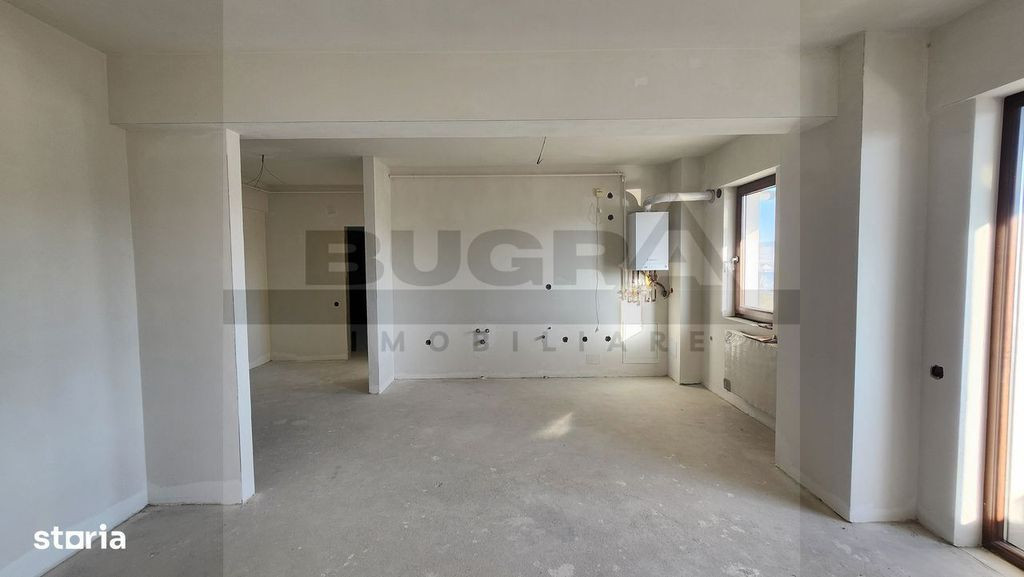 Bugra Imobiliare iti ofera un apartament de 58 mp, situat la etajul 4 din 6 al unui bloc din cărămidă construit în 2018. Apartamentul se vinde la stadiu semifinisat și este compus din două camere, un balcon, depozit, terasă și loc de parcare subteran. Dispune de tâmplărie pvc, beneficiează de centrală pe gaz proprie și calorifere pentru încălzire. Suprafață totală 71,79 mp din care suprafață utila 58 mp și balcon 13,79 mp. Loc de parcare subteran 12,5 mp. Apartamentul se află în zona Europa, aproape de diverse facilități. În apropiere găsești școli, grădinițe și licee, precum și spitale și clinici. În plus, ai acces rapid la parcuri, zone de sport și centre comerciale. Fără șantiere în vecinătate.Dacă vrei să locuiești într-o zonă cu facilități diverse și să poți personaliza locuința după preferințe, acest apartament poate fi alegerea potrivită.