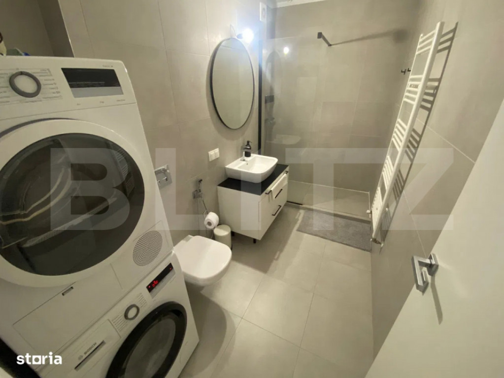 Blitz va propune un apartament modern cu 2 camere de vânzare în cartierul Maurer Residence, situat într-un bloc nou, la etajul 7 din 10. Proprietatea este complet mobilată și utilată, include loc de parcare teran și boxă la subsol, fiind ideală atât pentru locuință personală, cât și pentru investiție. Suprafața utilă este de 59 m², compartimentată eficient, oferind o locuință luminoasă și practică. Apartamentul este gata de utilizare, fără a necesita investiții suplimentare. Compartimentare: -Hol generos la intrare -Bucătărie separată, complet utilată -Living spațios cu canapea, zonă de birou și TV -Dormitor confortabil -Dressing separat cu acces din dormitor -Baie dotată cu mașină de spălat și uscător -Balcon cu balustradă din sticlă Dotări și electrocasnice: -Electrocasnice de marcă: Whirlpool, Bosch, Samsung, Electrolux -Mobilier modern, în stare foarte bună -Zonă de lucru integrată în living -Dressing complet amenajat pentru depozitare eficientă Facilități: -Loc de parcare teran inclus -Boxă la subsol -Clădire dotată cu lift -Balcon -Scară interioară Încălzirea se realizează prin centrală termică pe gaz. Apartamentul este disponibil începând cu data de 15 ianuarie 2026. Cod ofertă / ID BLITZ: P158732 Id intern: P158732