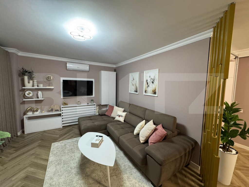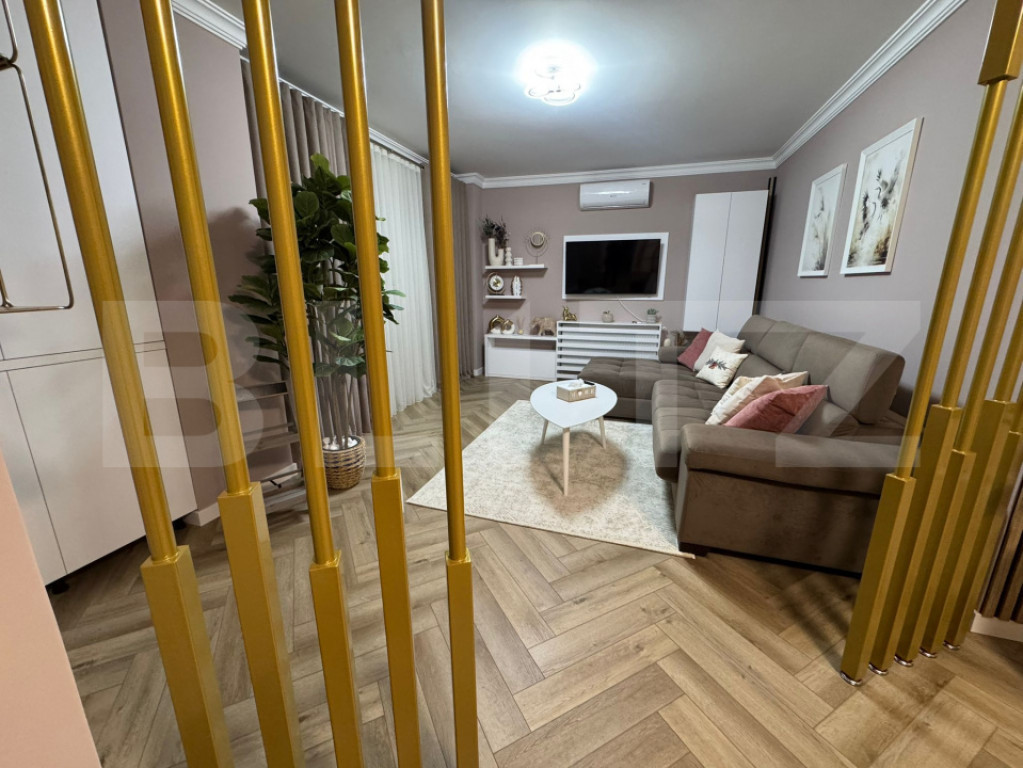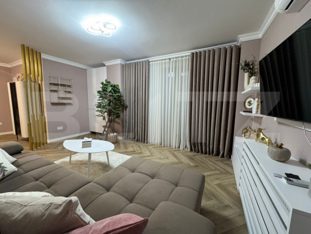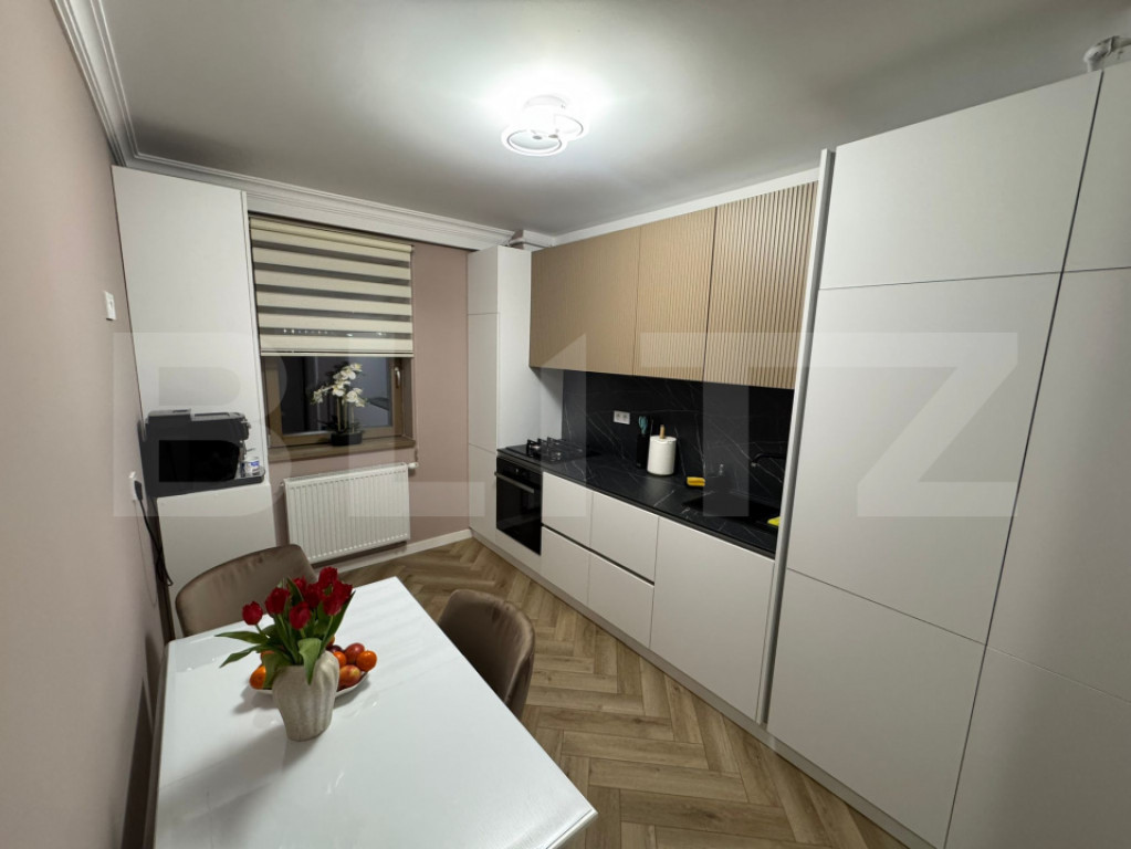 Blitz vă prezintă un apartament absolut superb, situat în Green Residence – cartier Tudor, aflat la prima închiriere și amenajat la standarde premium. Apartamentul are o Suprafață de 62 mp si se afla la etajul 4 al unui bloc nou cu 10 etaje . Apartamentul este amenajat cu atenție la fiecare detaliu și finisat la standarde înalte de calitate. Un spațiu rafinat, modern și extrem de primitor, ideal pentru cei care își doresc confort, eleganță și un stil de viață premium. Detalii care fac diferența: Finisaje premium, atent alese Mobilier realizat la comandă Electrocasnice noi, moderne și eficiente Bucătărie complet utilată Zonă de living luminoasă, cu design contemporan Dormitor elegant, amenajat în tonuri calde și relaxante Compartimentare practică și armonioasă Elemente decorative moderne și accente de lux Spațiul este aerisit, luminos și amenajat într-un stil modern-minimalist cu accente sofisticate, nuanțele calde și elementele aurii creează o atmosferă exclusivistă și elegantă. Bucătăria este complet echipată, cu mobilier realizat la comandă și electrocasnice noi, perfect integrate în design, inclusiv vesela si aparat de cafea. Livingul oferă un ambient relaxant, ideal atât pentru momente de liniște, cât și pentru socializare. Dormitorul este amenajat cu bun gust, oferind confort și intimitate. Balconul, locul de relaxare dimineata sau seara , este cu acces atata din living cat si din dormitor. Totul este nou, impecabil și pregătit pentru primul chiriaș. !!! Comision 0% la inchiriere !!!! Ideal pentru persoane care apreciază calitatea, bunul gust și confortul unui cămin modern. Cod ofertă / ID BLITZ: P164332 Id intern: P164332