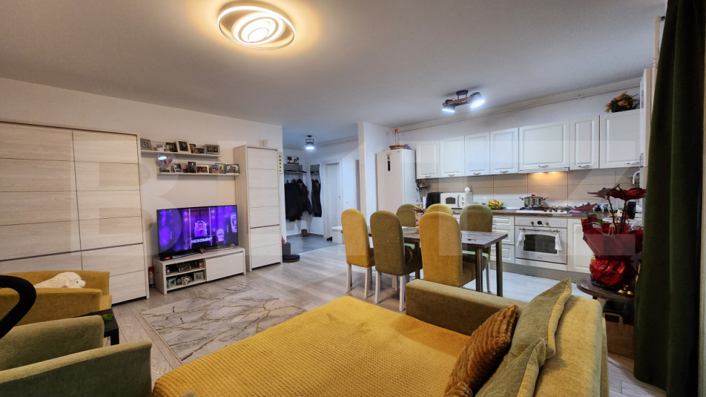 Blitz vă propune spre vânzare un apartament cu 2 camere, cu o suprafață utilă generoasă de 65 mp, situat într-un imobil nou, construit la standarde înalte de calitate. Amenajat modern și cu atenție la detalii, apartamentul este pregătit să devină fie căminul tău primitor, fie o investiție inspirată, cu potențial excelent pe termen lung. Livingul și dormitorul sunt finisate cu parchet laminat, oferind un ambient cald și elegant, în timp ce baia este dotată cu cadă și finisaje rafinate. Bucătăria, realizată din MDF, impresionează prin designul modern și este complet mobilată și utilată cu frigider, hotă, cuptor, aragaz și cuptor cu microunde – totul pregătit pentru confortul zilnic. Apartamentul se vinde exact ca în fotografii: complet mobilat și utilat, cu mobilier de calitate, ales cu bun gust. Cromatica armonioasă și materialele atent selecționate creează o atmosferă echilibrată, oferind nu doar confort vizual, ci și o stare de liniște și „acasă” încă din prima clipă. Lumina naturală inundă spațiul datorită ferestrelor mari, iar confortul termic este asigurat de geamurile tripan de înaltă calitate și de izolația eficientă a blocului nou construit. Situat la etajul 6 din 8, apartamentul beneficiază de o panoramă superbă și de o orientare spre parc, oferind liniște și intimitate. Balconul spațios devine locul perfect pentru momentele de relaxare – fie că savurezi cafeaua în diminețile de vară, fie că te bucuri de apusurile liniștite. În plus, imobilul dispune de loc de parcare situat chiar în fața blocului – un avantaj important pentru confortul zilnic. ???? Fie că îți dorești un cămin modern și luminos, fie că ești în căutarea unei investiții sigure și profitabile, această proprietate este o oportunitate care merită descoperită. Cod ofertă / ID BLITZ: P165539 Id intern: P165539