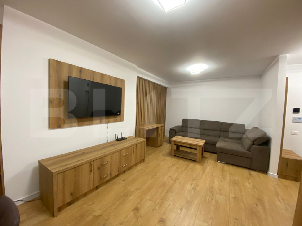 Blitz vă propune spre închiriere un apartament modern, complet mobilat, cu o suprafață de 65 mp, situat într-un imobil smart, eficient energetic. Apartamentul este nou, la prima închiriere, luminos și bine compartimentat, ideal pentru un cuplu sau o familie, oferind un nivel ridicat de confort. Locuința dispune de: • dormitor cu dressing, • living primitor, dotat cu canapea și TV, • bucătărie open-space complet utilată, • baie, • hol generos, cu multiple spații de depozitare. Încălzirea se realizează prin pardoseală, asigurând un confort termic ridicat. Blocul este smart și foarte economic, fiind dotat cu panouri solare și un puffer de 5 mc, ceea ce permite încălzirea apei aproape tot timpul anului fără costuri suplimentare. Zona este excelentă: în imediata apropiere se află parc pentru copii, magazine și mijloace de transport în comun. Poziționarea este centrală, la doar 3 minute de Iulius Mall și 5 minute de Facultatea de Medicină și complexul studențesc. ???? Pentru mai multe detalii și programarea unei vizionări, vă invităm să ne contactați. Cod ofertă / ID BLITZ: P163472 Id intern: P163472