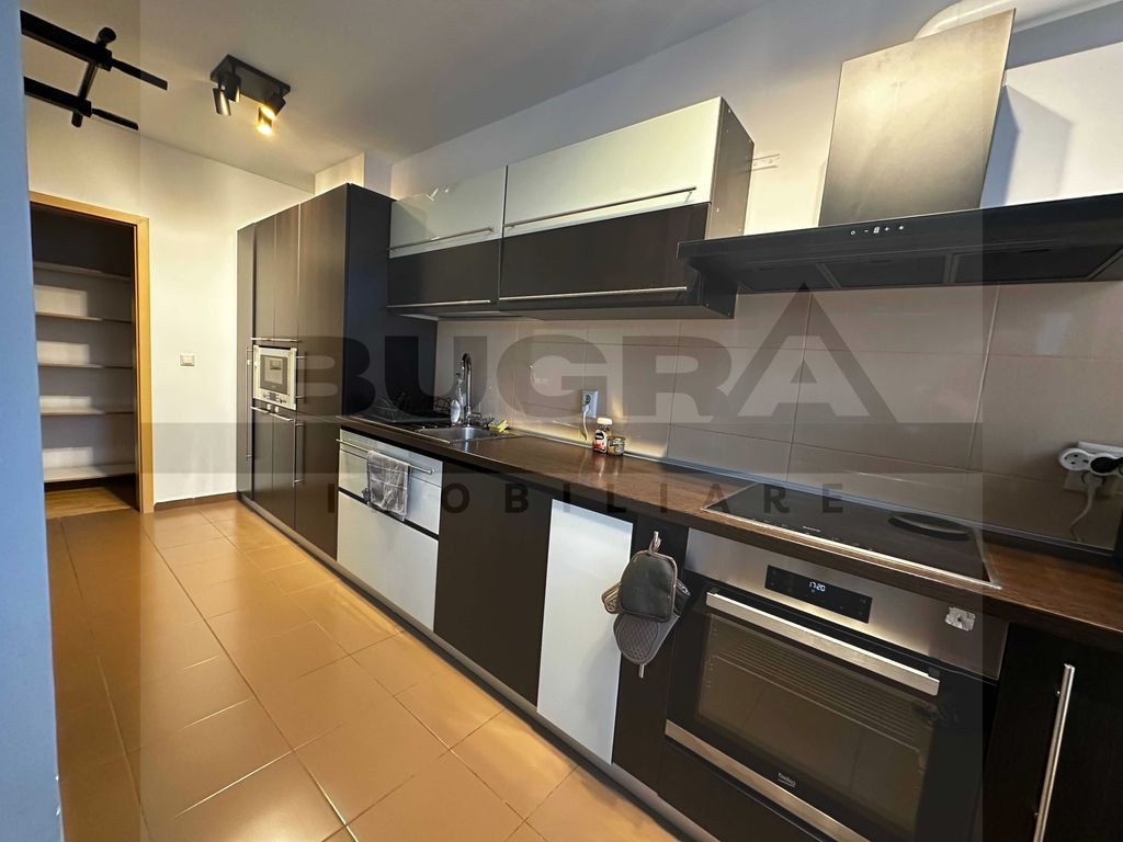 Bugra Imobiliare va ofera spre vanzare un apartament de 2 camere, spațios (65 mp utili), situat la etajul 4/5 într-un bloc izolat, cu lift. Apartamentul este complet mobilat și utilat, gata de mutare imediată. Electrocasnice incluse: - Mașină de spălat vase; - Mașină de spălat rufe; - Uscător de haine. - Cuptor, hota, plita vitroceramica, cuptor cu microunde (Bosch) - 1 televizor (dormitor) Avantaje și compartimentare: - Suprafață: 65 mp utili (fara balcoane) + Boxă depozitare (2 mp). - Parcare: Loc propriu în garaj subteran (inclus in pret). - Exterior: 2 balcoane (fiecare de 6.5mp din care unul inchis cu gemuri termopan). - Depozitare: Dressing generos + Cămară. Confort și dotări tehnice: - Centrală termică proprie + Calorifere. - Aer Condiționat. - Ventilator cu recuperare de căldură în dormitor (aerisire eficientă fără pierderi de căldură). - internet de la DIGI Se vinde exact cum se vede în poze. Apartamentul se vinde impreuna cu un loc de parcare subteran contra-sumei de 15.000 euro. TVA inclus Disponibil imediat, va asteptam la vizionare!