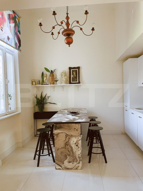 Blitz vă propune spre închiriere un apartament boem și sofisticat, o oază de rafinament în inima orașului, ce îmbină perfect farmecul vintage cu confortul contemporan.