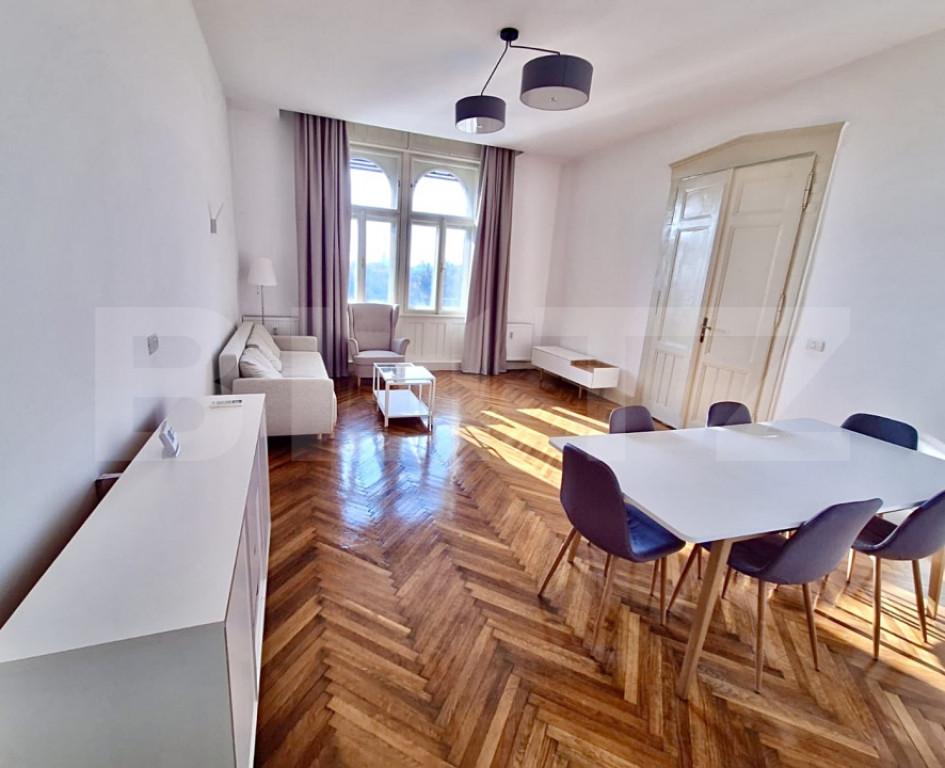 Blitz va propune spre vânzare un apartament absolut deosebit, situat într-o clădire istorică emblematică pentru orașul Timișoara, o proprietate care îmbină eleganța arhitecturală cu o locație premium. Cu o suprafață utilă de 77 mp, apartamentul este compartimentat eficient și armonios: un dormitor spațios, living generos, bucătărie separată, baie și hol de acces. Fiecare spațiu este bine proporționat. Elementele originale: tocăria, tâmplăria și detaliile arhitecturale, sunt perfect întreținute, păstrând autenticitatea și farmecul epocii. Înălțimea impresionantă a tavanelor amplifică volumul interior și creează o atmosferă nobilă, aerisită. Priveliștea este spectaculoasă, completând experiența de locuire într-un apartament istoric veritabil. Poziționarea este excelentă: acces facil la mijloace de transport în comun, magazine, restaurante și toate facilitățile urbane esențiale. O proprietate ideală pentru iubitorii de arhitectură istorică și pentru cei care caută un spațiu cu personalitate, într-una dintre cele mai reprezentative clădiri ale orașului. Va invitam la o vizionare. Cod ofertă / ID BLITZ: P165296 Id intern: P165296