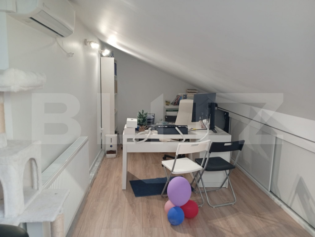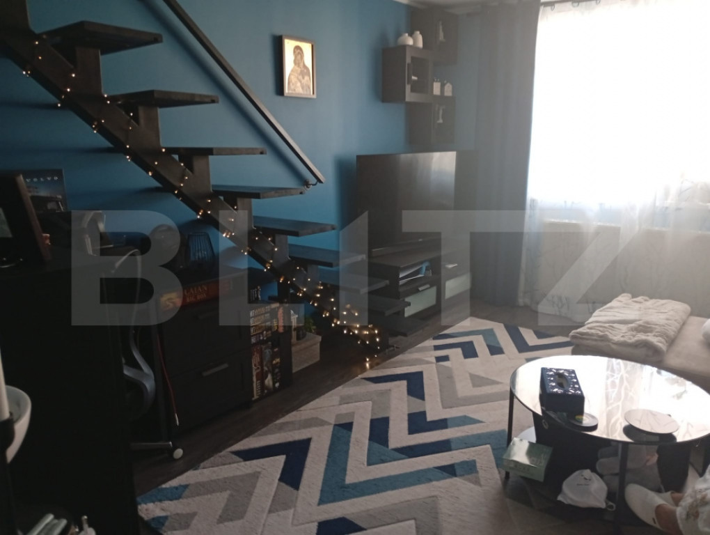 Blitz va propune spre vanzare un apartament de 54,5 mp, aflat in zona Calea Cisnadiei. Imobilul se afla intr-un bloc de 3 etaje, fiind la ultimul etaj, avand orientre vestica, ofera un apus magnific la cina datorita geamuilor mari ale balconului si bucatariei. Fiind format din 2 camere, decomandat, imobilul permite incropeste intimitatea dormitorului si serile distractive cu prietenii in living facandu-te sa iti doresti sa renunti la serile in oras,dar daca preferi sa lucrezi remote, din living poti urca pe scarile interioare spre un spatiu generos care iti poate deveni biroul de acasa. Sa nu uitam si de serile relaxante din cada plina cu spuma,da? Fiind deja utilat cu tehnologie de inalta calitate si mobilat cu mult bun gust, asa cum si planuieste sa te intampine dupa ce il cumperi, te asteapta la vizionare. Iti surade ideea de a-l vedea? Ce mai stai pe ganduri? Hai sa ti-l prezint! Cod ofertă / ID BLITZ: P155868 Id intern: P155868