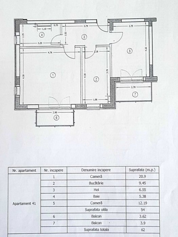 Suprafața utilă 54 m²