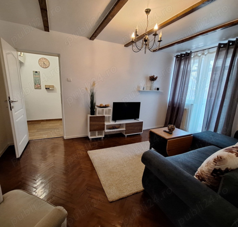 Apartament 2 camere, suprafata utila 50 mp, etaj 3/6, stradal, pe B-dul Gheorghe Duca in apropiere de Piata Victoriei si Gara de Nord.Blocul este anvelopat, scara este si ea complet renovata si dotata cu monitorizare video, interfon, lift modernizat. Apartamentul este complet renovat, mobilat si utilat cu mobila pe comanda in majoritate din lemn masiv.Spatiul este impartit in: Living spatios cu balcon inchis cu termopan si prevazut cu gresie, un dormitor spatios prevazut cu debara amenajata, bucatarie, baie dar si doua holuri, cel de intrare prevazut cu debara. Dormitorul dispune de mobila din lemn masiv-pat dublu cu depozitare, dulap, AC inverter, tv led smart.Living-ul dispune de canapea extensibila spatioasa in forma de L, tv smart led.Intregul apartament este zugravit, placat cu gresie, faianta, podelele cu parchet masiv si iluminat complet led.Pe langa cele mai sus amintite apartamentul pune la dispozitie frigider, masina de spalat rufe, aragaz cu cuptor, aspirator, cablu tv si router wi-fi DIGI. Comision 50% Id intern: P228936