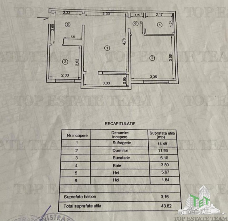 Suprafața utilă 44 m²
