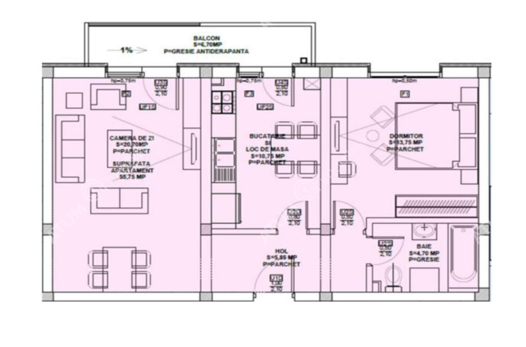 Comision 0! De vanzare in Selimbar, apartament cu 2 camere decomandate, gradina, balcon si loc de parcare, situat intr-un imobil cu doar 3 etaje in zona Doamna Stanca. Apartamentul are suprafata utila de 55.75 mp, distribuita pe living de 22.70 mp, dormitor de 13.75 mp, bucatarie de 10.75 mp, baie de 4.70 mp si hol de acces de 5.85 mp unde se poate amenaja cuier si pantofar. Separat de suprafata utila mai beneficiaza de un balcon de 6.70 mp si o gradina in suprafata de 40.3 mp. Locuinta detine finisaje si dotari standard precum: - Usa metalica de acces; - Usi interioare ; - Interfon montat pe pozitie; - Obiecte sanitare montate pe pozitie; - Pereti interiori din caramida, tencuiti ( tencuiala pe baza de var-ciment ), doua straturi aplicate de glet si zugraviti cu lavabila alba; - Pardoseli amenajate parchet laminat, gresie si faianta in baie si bucatarie; - Prize si intrerupatoare funtionale montate pe pozitie; - Tamplarie PVC marca Salamander cu 5 camere si 3 foi de sticla, glafuri exterioare de aluminiu si interioare din PVC; - Centrala termica proprie pe gaz marca Bosch in condensare cu senzor de gaz si incalzire in pardoseala; - Racorduri apa-canal in bucatarie si bai; - Racord gaz metan in bucatarie; - Instalatii electrice trase pe pozitie cu tablou general si sigurante pentru consumatorii de putere, instalatii pentru TV si internet trase pe pozitie; - Contorizari individuale si contoare montate pentru gaz, curent si apa; - Balcon placat cu gresie antiderapanta. Casa scarii se va preda complet finisata si dotata cu: pereti tencuiti si zugraviti cu vopsea lavabila, plafoniere cu senzor de miscare, pardoseala placata cu gresie antiderapanta, interfon la intrare, usa de acces din PVC cu inchidere electromagnetica. In pretul de achizitie este inclus si un loc de parcare privat, delimitat si inscriptionat, situat in fata imobilului. Apartamentul face parte dintr-un complex rezidential de imobile cu regim redus de inaltime (Parter 3 Etaje), dotat cu alei pietonale pavate cu dale de beton si iluminate, acces auto si spatiile verzi complet amenjate. Valoarea de achizitie a apartamentului la avans minim de 15% este 116160 euro. Acesta se poate achizitiona si prin credit bancar. ID intern: 3002.