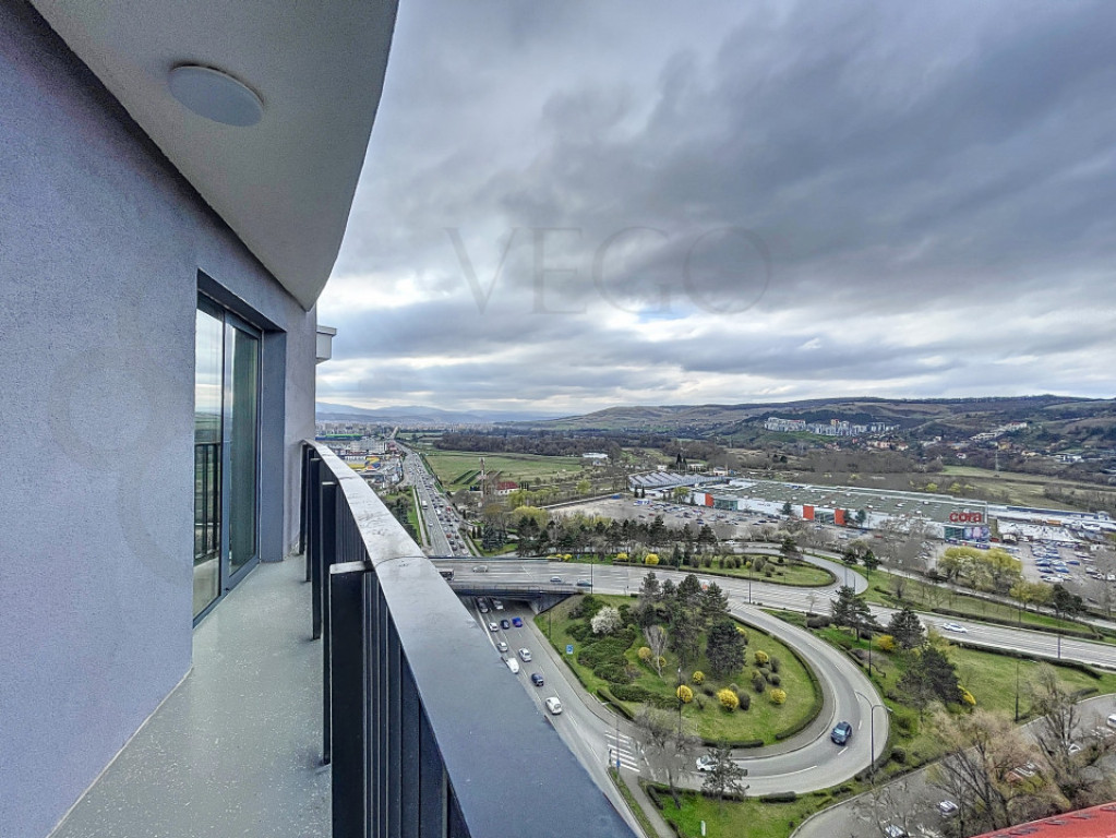 VEGO IMOBILIARE vă prezintă spre închiriere și vă stă la dispoziție cu acest apartament de 2 camere, poziționat la etajul 12 al unui imobil nou construit, dispus pe 24 niveluri, situat în ansamblul rezidențial West City Tower, o construcție unică și emblematică a municipiului Cluj-Napoca, oferind în același timp acces facil asupra multor puncte de interes, situat la o distanță de câteva minute de mijloacele de transport în comun, de asemenea, în apropiere se regăsesc magazine, farmacii, bănci, parcuri, spații verzi și multe alte obiective importante. Locuința se desfășoară pe o suprafață utilă de 54 mp + un balcon de aproximativ 6 mp, finisajele sunt moderne, de înaltă calitate, se închiriază complet mobilată și utilată, inclusiv cu mașină de spălat vase, TV Smart 4K 164 cm, uscător rufe, cuptor electric cu plită inducție, în rândul dotărilor menționăm pardoseala cu parchet laminat, ferestre termoizolante cu tâmplărie PVC, ușă antiefracție la intrare și uși interioare din lemn, iar confortul termic este oferit de centrala termică a imobilului cu sistem de încălzire în pardoseală. Compartimentarea este semidecomandată, astfel: - 1 cameră de zi + 1 bucătărie open-space, 1 dormitor, 1 balcon, 1 baie, 1 hol. Preț: 650 euro/lună. Pentru orice alte informații, sau pentru stabilirea unei vizionări, nu ezitați să ne contactați, iar un reprezentant al agenției, vă stă la dispoziție cu toate detaliile necesare. ID: R811 Id intern: P110266