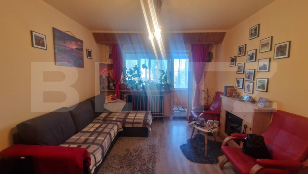Blitz propune spre vânzare un apartament de 2 camere, semidecomandat, 53 mp utili plus balcon, situat într-o zonă liniștită și aerisită, cu priveliște deosebită. Locuința este luminoasă și primitoare, fiind amplasată într-un imobil cu scară curată și bine întreținută. Apartamentul dispune de un balcon spațios de 7 mp, perfect pentru relaxare și pentru a vă bucura de razele soarelui, de două holuri care asigură o compartimentare practică, precum și de o bucătărie închisă, încăpătoare și funcțională. Pentru un plus de spațiu de depozitare, apartamentul este prevăzut cu debara și cămară, detalii utile pentru o locuință bine organizată. Baia beneficiază de aerisire naturală, un aspect rar întâlnit și foarte apreciat, care sporește confortul de zi cu zi. Apartamentul se vinde pqrtial mobilat. În zonă există posibilitatea de parcare la liber, astfel încât accesul cu mașina nu reprezintă o problemă. Orientarea sa asigură luminozitate pe tot parcursul zilei, ceea ce face ca atmosfera interioară să fie una caldă și primitoare. Această proprietate este ideală atât pentru locuire personală, cât și ca investiție. Vă așteptăm cu drag la vizionare! Cod ofertă / ID BLITZ: P152391 Id intern: P152391