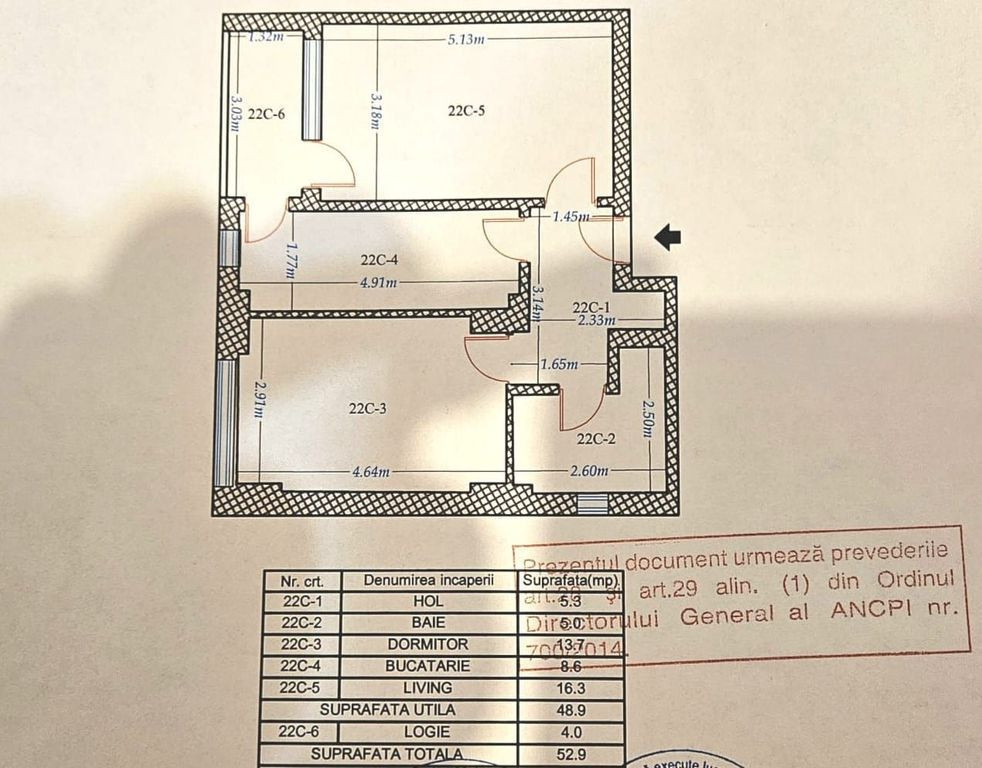 Suprafața utilă 53 m²