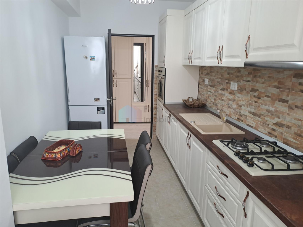 Flux Imobiliare va ofera spre inchiriere un apartament cu 2 camere decomandate in bloc nou in Burdujeni, cartier Cuza-Voda 2, aproape de scoala generala Miron Costin, gradinita, parc, piata, magazinele Lidl si Penny. Se afla la etajul 2, are suprafata utila de 67 mp, finisaje moderne, de calitate superioara, arata impecabil. Dotat cu centrala termica proprie, tamplarie din pvc cu geam termopan, izolatie termica exterioara. Imobilul este mobilat si utilat cu: masina de spalat, plita pe gaz, hota, cuptor electric, frigider, televizor. Detine parcare proprie, poarta de acces cu telecomanda, spatiu de joaca si gratar. Ideal pentru un cuplu de tineri sau o familie. Termen lung, minim 1 an. Se inchiriaza la pretul de 400 euro negociabil cu parcarea inclusa in pret.