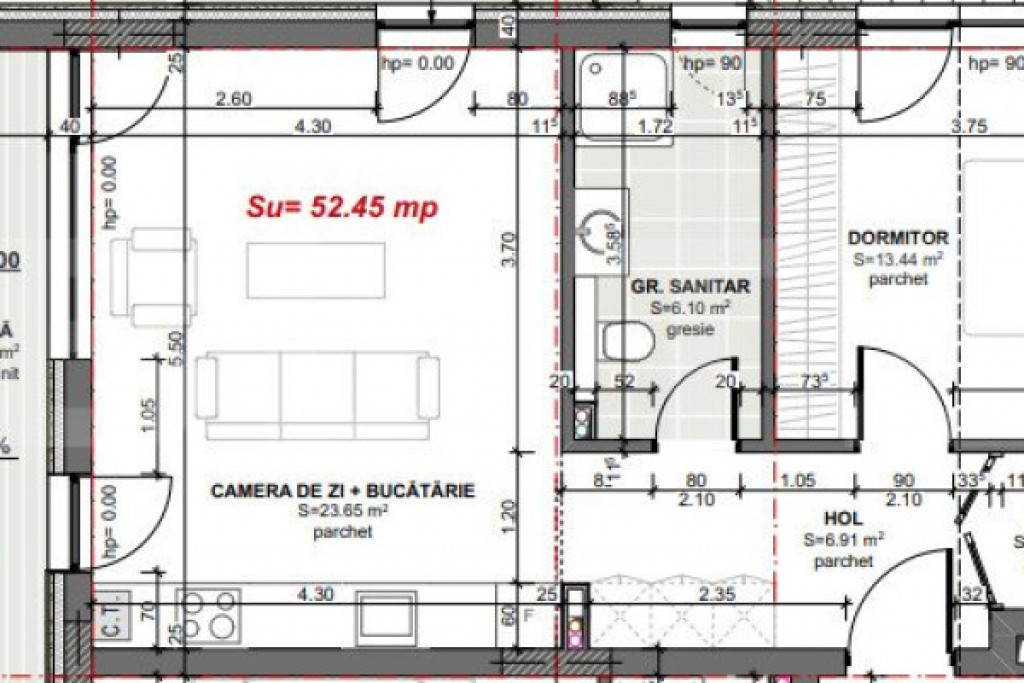 Suprafața utilă 52 m²