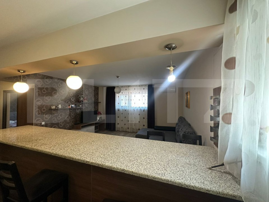 Blitz va propune spre vanzare un apartament cu 2 camere, open-space. Acesta este situat la demisolul unui bloc nou, construit in anul 2013. Imobilul masoara o suprafata utila si totala de 63 mp si este compartimentat dupa cum urmeaza: Hol, living open space cu bucataria, dormitor si baie dotata cu geam pentru aerisire naturala. Apartamentul beneficiaza de centrala proprie, aparat de aer conditionat si contorizare separata la toate utilitatile. De asemenea, imobilul se vinde complet mobilat si utilat si poate reprezenta o buna oportunitate pentru investitie, avand deja chiriasi pentru suma de 400 euro, dar este potrivit si ca o locuinta personala , avand in proximitate mai multe puncte de interes precum : Licee, Scoli, Piata, acces facil catre mijloacele de transport in comun. Cod ofertă / ID BLITZ: P146456 Id intern: P146456