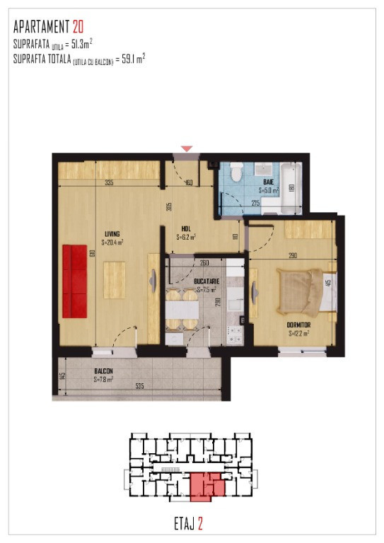 Top Trade Residence va propune acest apartament cu 2 camere situat intr-un imobil nou in zona excelenta vis-a-vis de McDonald's Bragadiru si alte puncte de interes! Caracteristici cheie: • Suprafață generoasă de 59 mp, oferind spațiu pentru confort și relaxare. • Dormitor primitor, ideal pentru nopți liniștite de odihnă. • Living luminos, perfect pentru momente de relaxare sau petreceri cu prietenii și familia. • Bucătărie modernă. • Baie elegantă și funcțională, pentru răsfăț și îngrijire personală. • Hol de acces spațios, care facilitează circulația și organizarea în apartament. • Balcon privat, ideal pentru a savura o cafea dimineața sau pentru a admira apusurile spectaculoase. • Situat la etajul 1 al unei clădiri rezidențiale de tip P+4E+5ER. • Zonă liniștită,oferind un mediu perfect pentru relaxare și refacere. Detalii suplimentare: • Loc de parcare contra cost. • Acces facil către mijloacele de transport în comun, magazine, școli și alte facilități. • Oportunitate perfectă pentru cei în căutarea unei locuințe confortabile sau a unei investiții sigure în imobiliare. Pret: 71.000 Euro tva inclus. Contactați-ne acum pentru mai multe informații și pentru a programa o vizionare! Andreea Ionita - 0771.714.542 Email: [email protected]