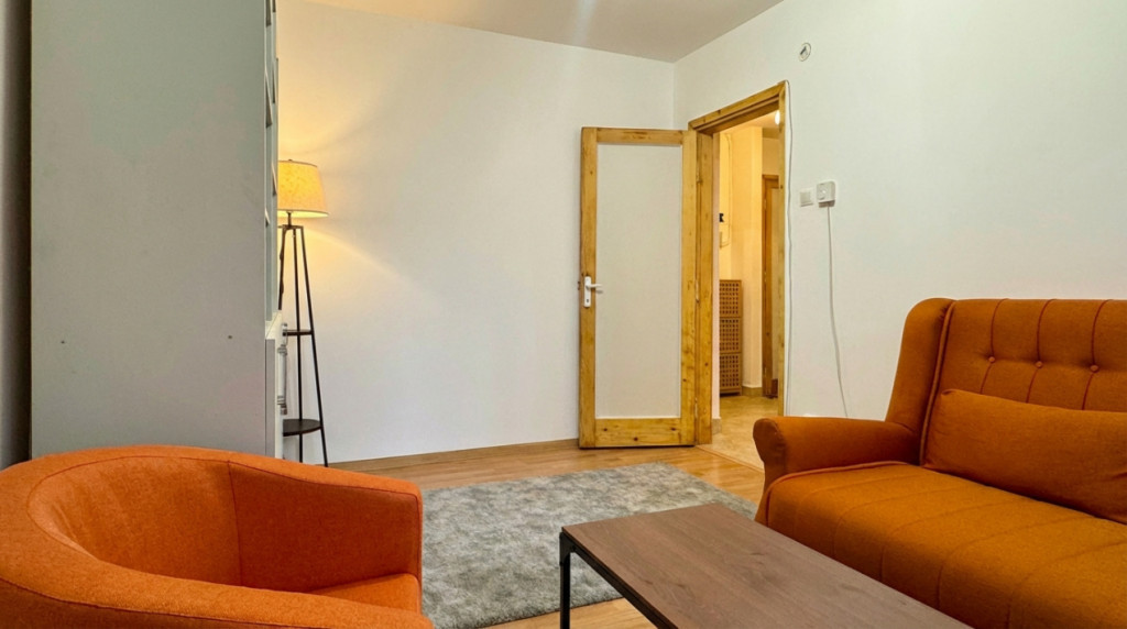 Se oferă spre închiriere un apartament cu 2 camere, situat pe Calea Călărașilor nr. 117, într-un imobil cu 4 etaje, la parter. Apartamentul are o suprafață utilă de 40 mp și este potrivit pentru o persoană sau un cuplu. Locuința dispune de centrală termică proprie, iar mobilierul din dormitor, sufragerie și bucătărie este nou. Bucătăria este complet mobilată și utilată, incluzând frigider nou și mașină de spălat nouă, astfel încât apartamentul este gata de mutare. Un avantaj al acestui apartament îl reprezintă accesul la o zonă de grădină comună, din care o porțiune este delimitată cu gard și poate fi utilizată exclusiv de chiriaș. Zona verde este vizibilă din dormitor, iar accesul se face prin spatele apartamentului, oferind un plus de intimitate. Zona beneficiază de acces facil la mijloacele de transport în comun, cu tramvai și autobuz în apropiere, asigurând legături rapide către centrul Bucureștiului și către alte zone ale orașului. Apartamentul este o opțiune foarte bună pentru cei care își doresc o locuință funcțională, bine poziționată și cu acces la spațiu verde, într-o zonă bine conectată. Id intern: GC20313
