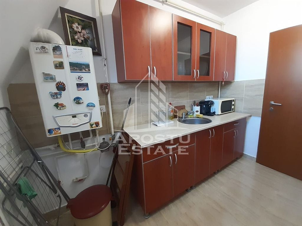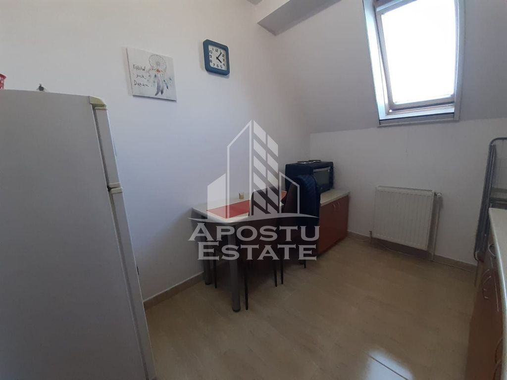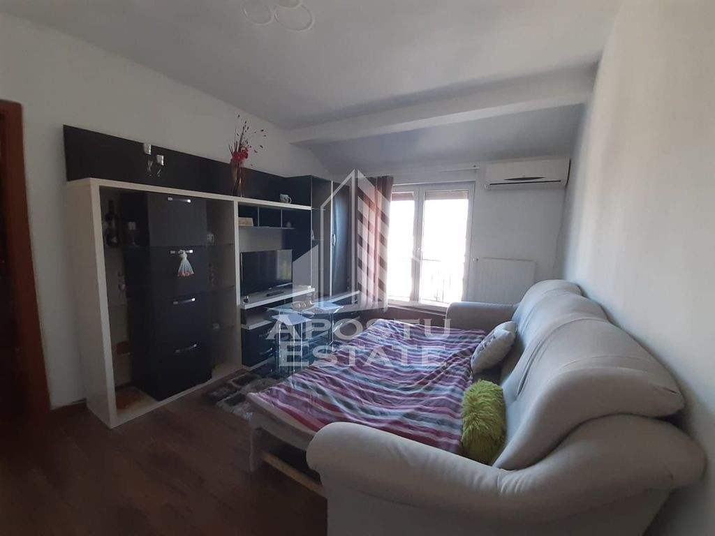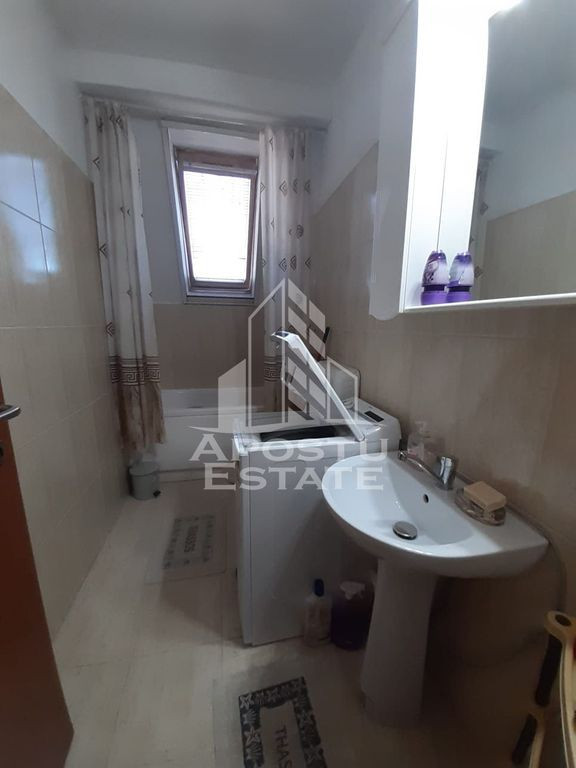 APOSTU ESTATE va propune spre inchiriere un apartament cu 2 camere, 1 baie, semidecomandat situat la mansarda in Zona Complex Studentesc. Imobilul se intinde pe o suprafata utila de 46 mp si este compartimentat astfel: - dormitor luminos mobilat cu pat matrimonial si birou; - dormitor mobilat cu canapea, spatii pentru depozitare si utilat cu aer conditionat; - bucatarie mobilata si utilata cu plita, cuptor electric si frigider; - baie cu cada, chiuveta si masina de spalat rufe. Confortul termic se realizeaza prin intermediul centralei termice proprii cu calorifere. Perioada minima de inchiriere este de 12 luni. Disponibilate imediata. Garantia este de 350 de euro. Contract obligatoriu la ANAF. Vecinatati: - Mijloace de transport in comun la 5 min de mers pe jos; - Facultatea de Economie la 3 min cu masina; - Centrul Orasului la 7 min cu masina; - UVT la 7 min cu masina; Va asteptam cu drag la o vizionare! ID intern: 2136667.