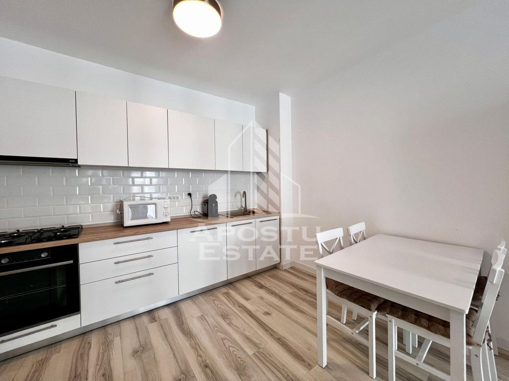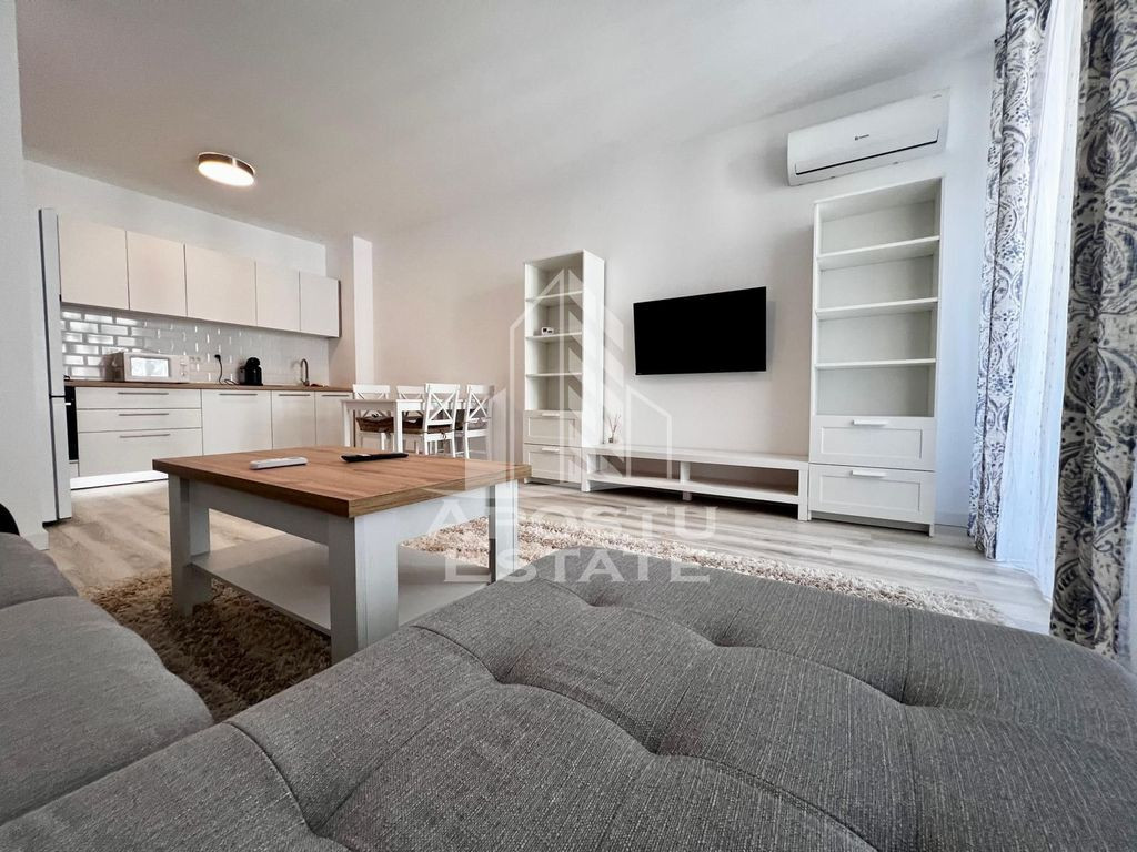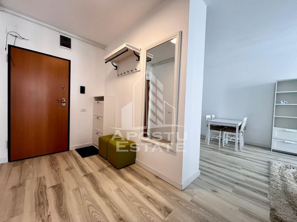 APOSTU ESTATE va ofera spre vanzare un apartament cu 2 camere, openspace la etajul 3 al unui imobil dispus pe 7 niveluri in zona Torontalului(Campeador City). Imobilul are o suprafata utila de 51 mp si este compartimentat astfel: - hol spatios - living + bucatarie open space utilat si mobilat modern - un dormitor matrimonial - o baie cu cada - balcon deschis Distante (cu masina): - Iulius Mall - 10 minute - Piata Victoriei - 16 minute Alte detalii: Confortul termic se realizeaza cu ajutorul centralei proprii (incalzire in pardoseala) si al aerului conditionat. Apartamentul se vinde complet utilat si mobilat. Locul de parcare este inclus in pret. Va asteptam cu drag la o vizionare! Id Intern: CCP1962279