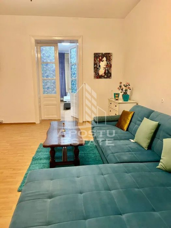 APOSTU ESTATE vă propune spre închiriere un apartament spaţios şi elegant, cu 2 camere, situat într-o zonă liniştită şi bine conectată din Iosefin, ideal pentru familii sau persoane care doresc un spaţiu generos şi confortabil. Suprafaţă utilă: 70 mp Compartimentare eficientă: - Bucătărie complet mobilată şi utilată, cu loc de luat masa - Living luminos şi spaţios - Dormitor matrimonial mobilat - Baie cu cadă şi geam pentru ventilaţie naturală Confort şi facilităţi: - Centrală termică proprie pe gaz - Aer condiţionat -Curte comuna care destine in loc de joaca pentru copii -Apartamentul este complet mobilat şi utilat Localizare: Zona Iosefin– linişte, acces facil spre oraş, în apropiere de magazine şi mijloace de transport în comun, Ideal pentru: - Familii - Cupluri -Studenti Preţ Chirie: 430 de euro Pret Garantie 430 de euro Preţ Chirie Animale de companie: 430 de euro Pret Garantie: 860 de euro se pot achita in doua transe Programează o vizionare! ID intern: CP2806289!