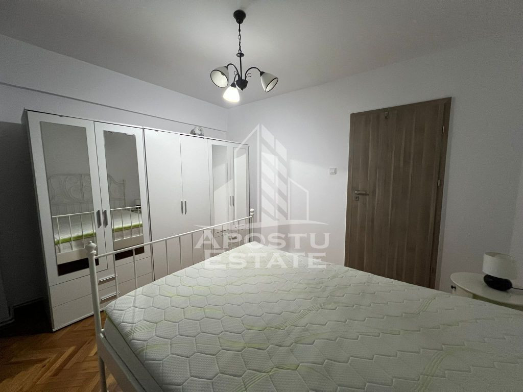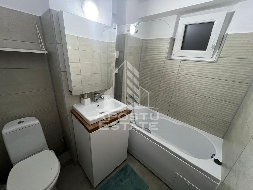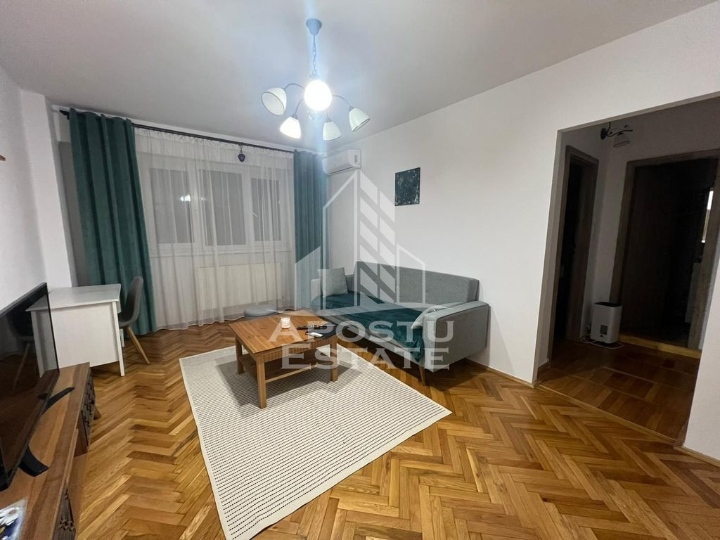 APOSTU ESTATE va propune spre inchiriere un apartament cu 2 camere, cu centrala proprie, situat intr-o zona linistita si bine conectata la principalele puncte de interes din Timisoara – zona Dacia, la 1,4 km fata de Iulius Mall. Apartamentul are o suprafata utila de 50 mp si este compartimentat eficient, oferind un spatiu ideal pentru un stil de viata practic si confortabil. Se inchiriaza complet mobilat si utilat. Compartimentare: Living spatios Dormitor primitor si modern Bucatarie complet echipata cu loc de luat masa Baie dotata cu toate cele necesare Este ideala pentru cupluri, studenti, persoane fumatoare, cele iubiroare de animale sau profesionisti care lucreaza remote. Confortul termic este asigurat prin centrala proprie. Localizarea in zona Dacia ofera numeroase avantaje: acces rapid la mijloace de transport in comun, supermarketuri, farmacii, scoli si alte facilitati urbane. In acelasi timp, zona este linistita si sigura, perfecta pentru un trai relaxat. Chiria lunara este de 420 EUR, iar garantia solicitata este de 420 EUR ( se percep 2 garantii pentru persoanele cu animale de companie, cu plata posibila in 2 transe) Daca esti in cautarea unui apartament functional si bine amplasat in Timisoara, te invitam cu drag la o vizionare! ID intern: CP2803510