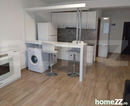 Apartamentul este complet mobilat și utilat, beneficiind de centrală termică proprie și aer condiționat, pentru un confort optim pe tot parcursul anului. Compartimentarea este funcțională: un living spațios și luminos, dormitor confortabil, bucătărie modernă și baie utilată. În plus, dispune de balcon, cu o priveliste suberba catre natura, oferind un spațiu de relaxare suplimentar.