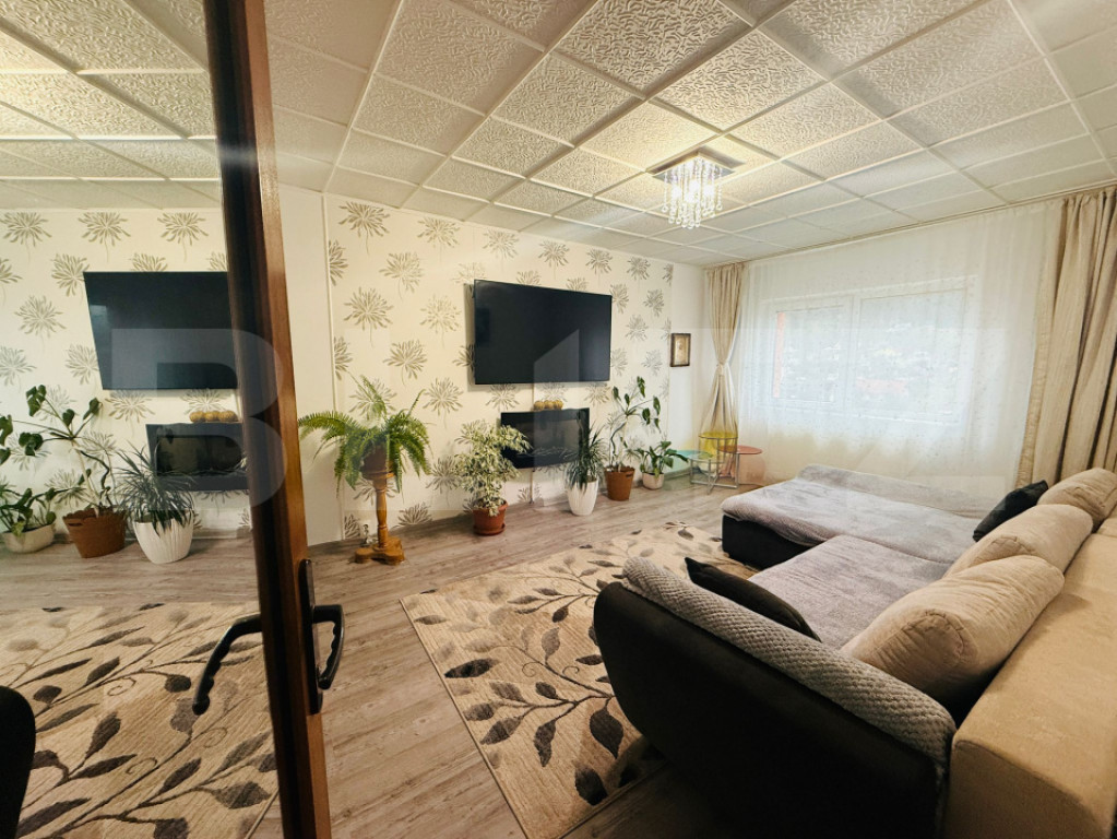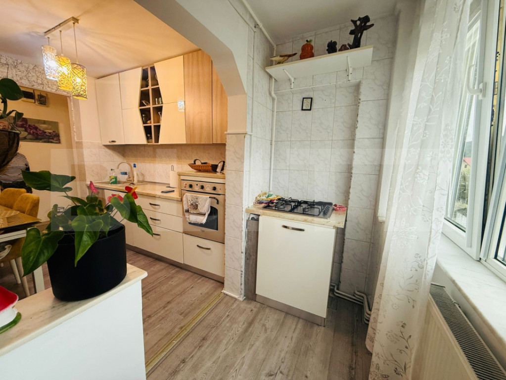 Blitz ofera spre vânzare un apartament de 2 camere situat în Săcele, la etajul 4 din 4, ideal pentru cei care își doresc un spațiu primitor, amenajat cu bun gust și cu o priveliște deosebită către munți. Locuința a fost renovată complet în urmă cu aproximativ 4 ani, folosindu-se materiale de calitate, fiind refăcută inclusiv instalația electrică în totalitate, ceea ce oferă un plus de siguranță și confort viitorilor proprietari. Apartamentul se remarcă printr-un design modern, atent ales, cu o atmosferă caldă și funcțională, fiind pregătit pentru mutare imediată. Compartimentare și dotări: Living luminos, cu acces la o vedere panoramică superbă spre munți Dormitor primitor Bucătărie complet mobilată și utilată Baie modernă, echipată cu mașină de spălat și uscător Centrală termică proprie și calorifere Se vinde mobilat și utilat, cu următoarele excepții: Bucătărie: rămân aragazul, cuptorul, mașina de spălat vase și mobilierul (NU rămân masa și frigiderul) Living: NU rămân canapeaua și televizorul Restul pieselor de mobilier și electrocasnicelor rămân în apartament Alte avantaje: Dispune de boxă pentru depozitare (mențiune: nu este inclusă în CF) Etaj superior – fără vecini deasupra Zonă liniștită, aer curat și acces facil către oraș Acest apartament este alegerea perfectă pentru cei care caută un cămin gata de locuit, într-o zonă cu peisaje deosebite și liniște. Cod ofertă / ID BLITZ: P169789 Id intern: P169789