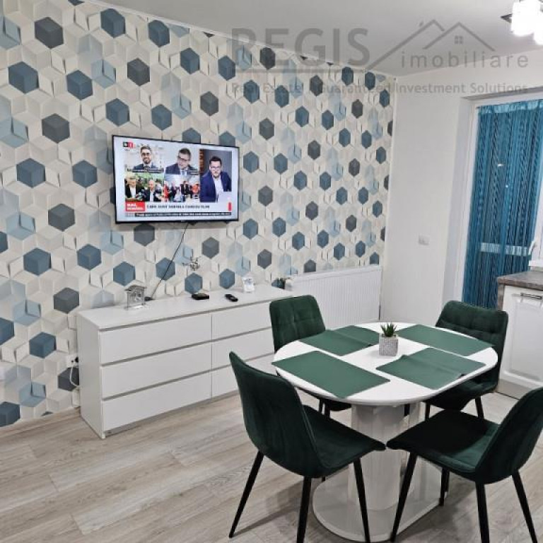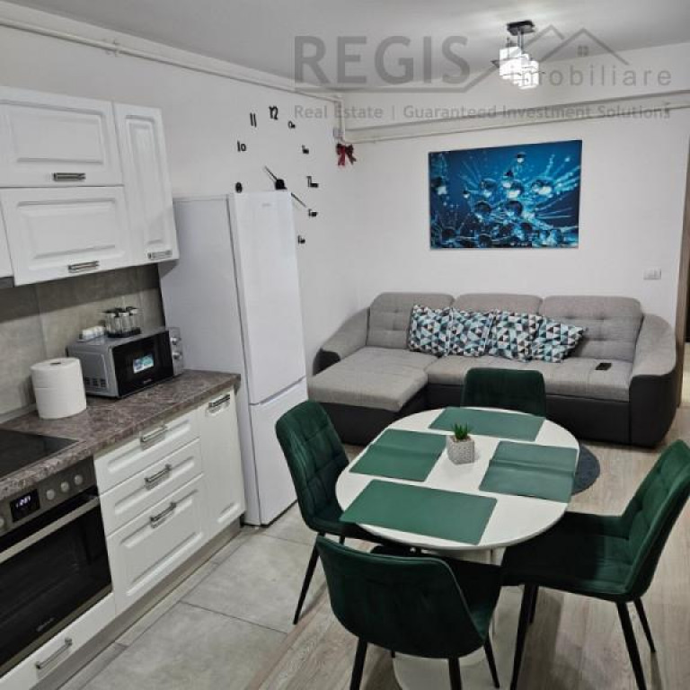 ID intern: 3821 Regis Imobiliare va propune spre inchiriere un apartament cu 2 camere, decomandat, confort I, situat in cartierul Tractorul, intr-un bloc nou, construit in anul 2022. Apartamentul este amplasat la etajul 1 din 8 si are o suprafata utila de 60 mp. Imobilul beneficiaza de o localizare excelenta, in apropierea Mall-ului Coresi, cu acces facil catre statii de autobuz, scoli si supermarketuri. Locuinta este luminoasa pe toata durata zilei, complet mobilata si utilata modern, cu finisaje de calitate. Dispune de balcon amenajat, dotat cu masa si doua fotolii, ideal pentru relaxare. Loc de parcare privat, cu acces securizat prin bariera. Bloc nou, dotat cu lift modern. Zona linistita si bine conectata. Nu se accepta animale de companie. Comisionul agentiei este de 50% din valoarea unei chirii. Pentru mai multe detalii sau pentru programarea unei vizionari, nu ezitati sa ne contactati.