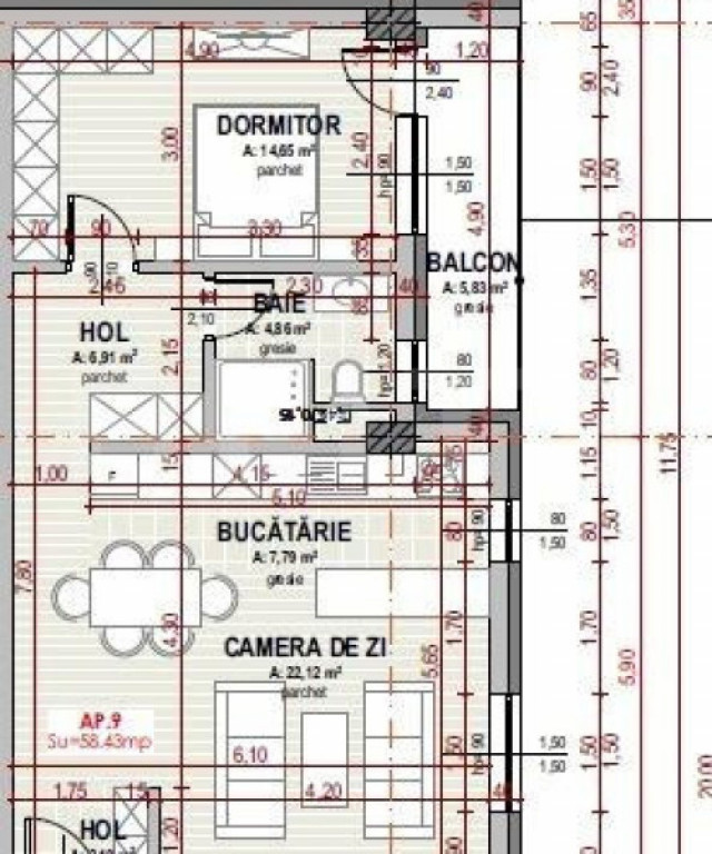 Apartament 2 camere cu CF semifinisat, 58 mp, parcare, zona
