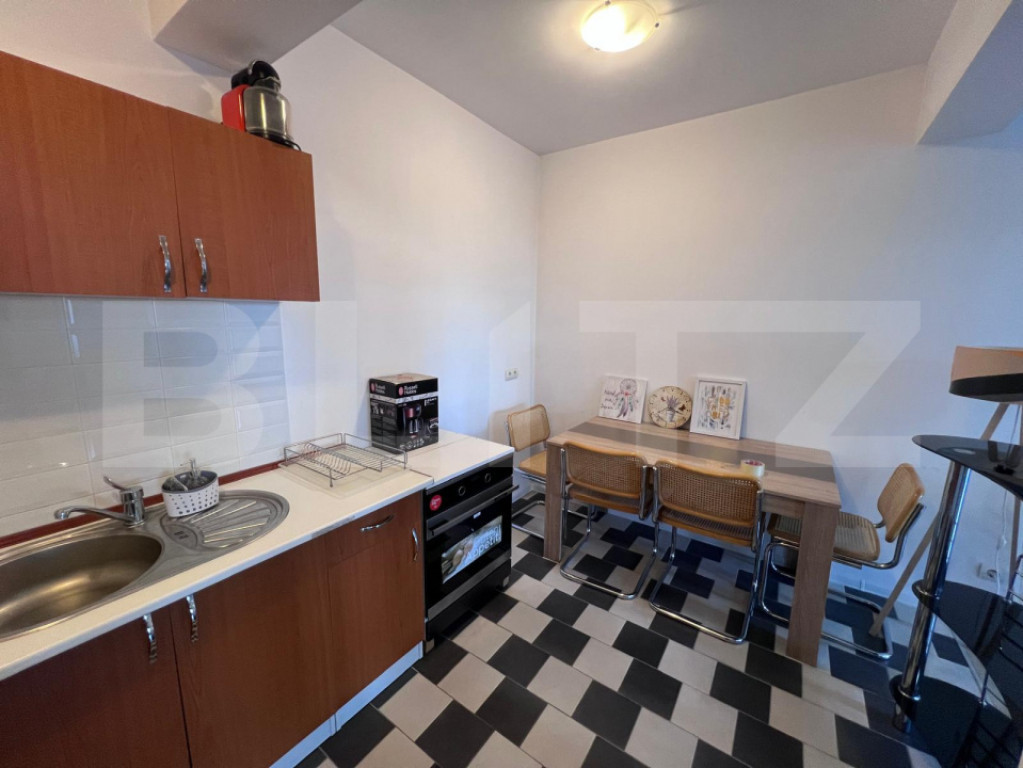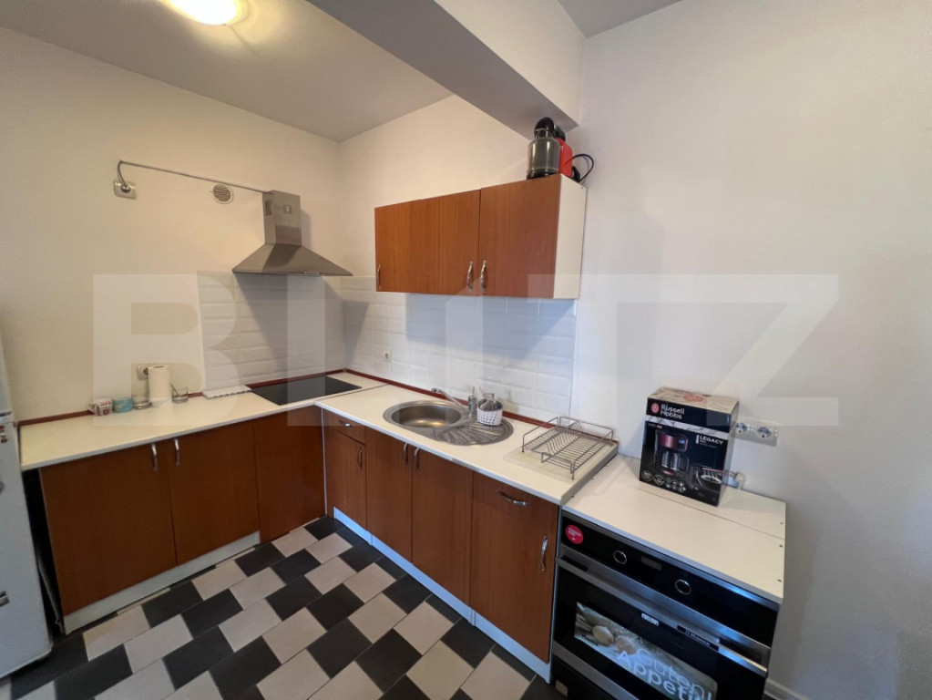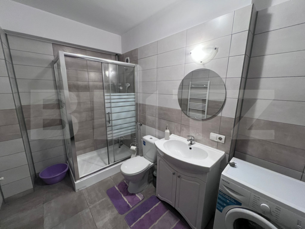 Blitz oferă spre închiriere apartament cu 2 camere, 68 m², situat în zona străzii Maramureșului, Cluj-Napoca. Apartamentul se află într-un bloc nou și beneficiază de o suprafață generoasă de 68 m², fiind compartimentat modern în living open space cu bucătărie, dormitor și baie. Un mare avantaj al proprietății este curtea proprie de 50 m², ideală pentru relaxare, oferind un plus de confort și intimitate. Locuința se închiriază complet mobilată și utilată, bucătăria fiind dotată cu plită electrică, hotă și cuptor electric, fiind pregătită pentru mutare imediată. În preț este inclus și un loc de parcare subterană, un beneficiu important pentru această zonă. Apartamentul reprezintă o ofertă foarte bună, fiind ideal pentru un cuplu sau o persoană care își dorește un spațiu modern, cu curte proprie, într-o zonă accesibilă a orașului. Pentru mai multe detalii sau programarea unei vizionări, vă invităm să ne contactați. Cod ofertă / ID BLITZ: P170289 Id intern: P170289