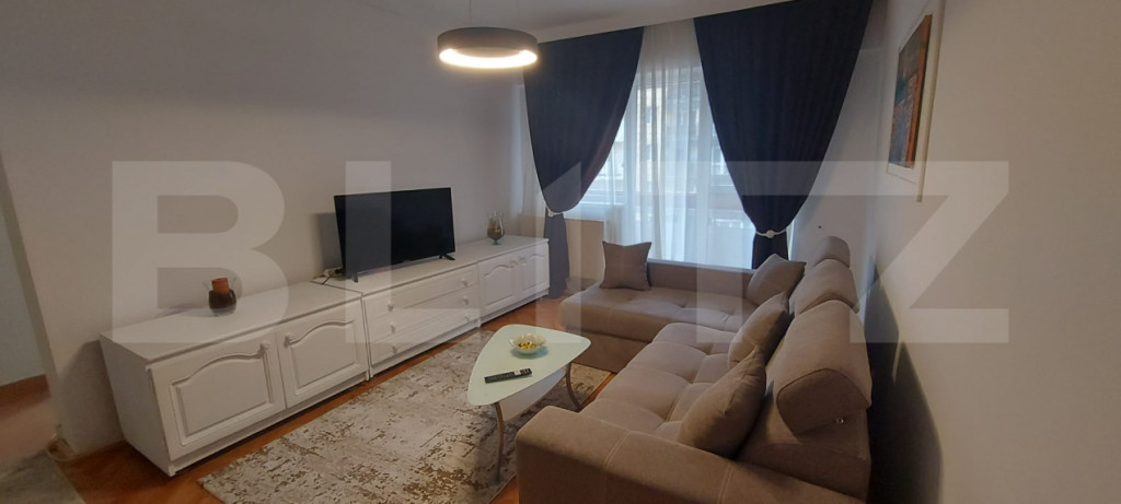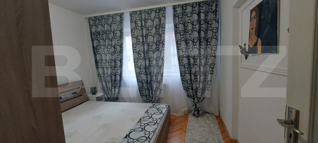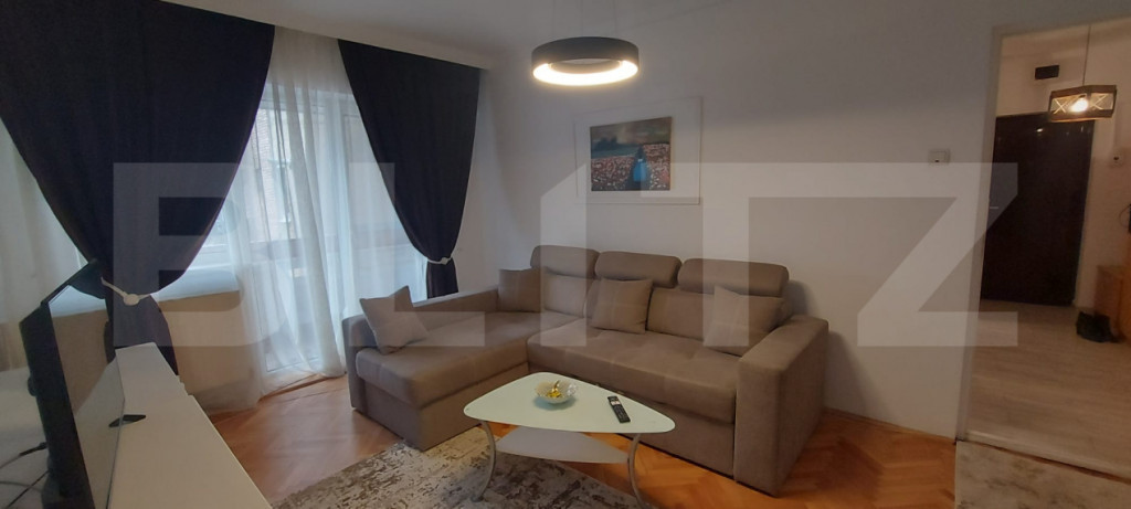 Blitz oferă spre închiriere un apartament cu 2 camere, situat într-o zonă centrală, ideal pentru persoane pretențioase care își doresc confort, liniște și acces rapid către toate punctele de interes ale orașului. Locuința este complet finisată modern, cu un design elegant și funcțional, fiind compusă din living spațios, dormitor luminos, bucătărie complet utilată, baie și balcon. Apartamentul este mobilat și dotat cu toate electrocasnicele necesare (mașină de spălat, frigider, aragaz/plită, cuptor, TV etc.), fiind pregătit pentru mutare imediată. Imobilul beneficiază de: lift și interfon zonă liniștită, ferită de agitația urbană locuri de parcare disponibile în fața blocului Este alegerea ideală pentru cei care apreciază confortul, calitatea și o atmosferă plăcută de locuit. Cod ofertă / ID BLITZ: P168705 Id intern: P168705