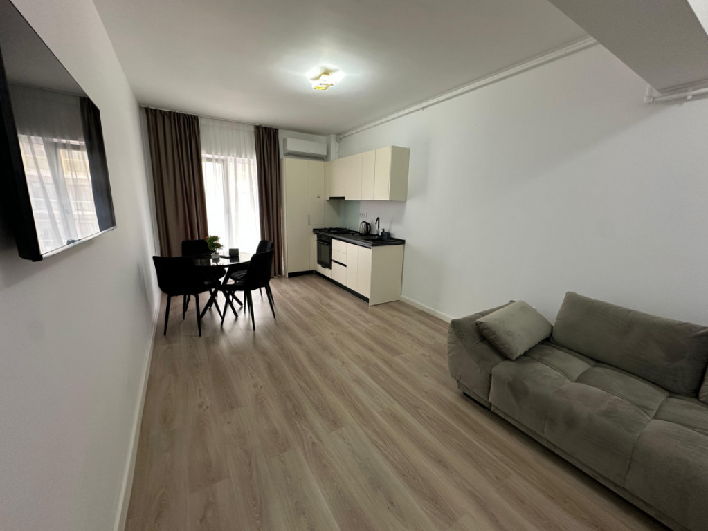 Blitz vă propune spre închiriere un apartament de 2 camere situat în cadrul unui ansamblu rezidențial, la doar 800 de metri de centrul orașului Ploiești. Apartamentul are o suprafață utilă de 50 mp și este complet mobilat și utilat, fiind ideal pentru locuit. Este situat într-un imobil finalizat în anul 2025, cu structură pe cadre de beton armat și pereți din cărămidă, izolat termic și dotat cu două lifturi. Ansamblul beneficiază de acces securizat, pază și supraveghere video. Compartimentare: • Living cu bucătărie open-space • 1 dormitor • 1 baie • Balcon Confortul termic este asigurat de centrala termică proprie cu încălzire prin pardoseală. Apartamentul dispune de finisaje moderne: gresie și faianță porțelanată, parchet stratificat, uși interioare MDF, ușă metalică antiefracție și tâmplărie PVC cu geam tripan Salamander. Modalități de achiziție: plata integrală, rate la dezvoltator sau credit bancar. Locul de parcare se poate rezerva separat, pe bază de abonament lunar. Cod ofertă / ID BLITZ: P167115 Id intern: P167115