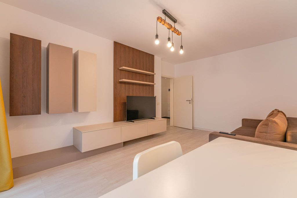 Vă propunem spre închiriere un apartament modern, situat în Brașov, zona Tractorul, în Ansamblul Rezidențial Maurer Villas. Locuința dispune de o compartimentare decomandată și este formată dintr-o cameră de zi, bucătărie, dormitor, baie, două balcoane și un hol de intrare, având o suprafață utilă de 55 mp la care se adaugă 7 mp de balcoane. Încălzirea și apa caldă sunt asigurate de o centrală termică pe gaz, iar confortul termic este garantat de sistemul de încălzire prin pardoseală. Apartamentul se închiriază complet mobilat și utilat, conform fotografiilor din prezentare. Dotările includ frigider, mașină de spălat vase, plită pe gaz, cuptor electric, hotă și mașină de spălat rufe. În plus, proprietatea beneficiază de un loc de parcare exterior inclus. Situat într-o zonă cu acces facil, apartamentul este aproape de mijloacele de transport în comun și de numeroase puncte de interes, precum Școala Gimnazială nr. 30, Colegiul Nicolae Titulescu, grădinițe, Coresi Shopping Resort, Piața Tractorul și Parcul Tractorul. Condiții de închiriere: se solicită plata chiriei în avans, o garanție, iar costurile utilităților și administrarea ansamblului se plătesc separat. Această proprietate este listată prin agenția imobiliară VIPIMOB, iar comisionul pentru chiriași este de 50% din valoarea unei chirii lunare.