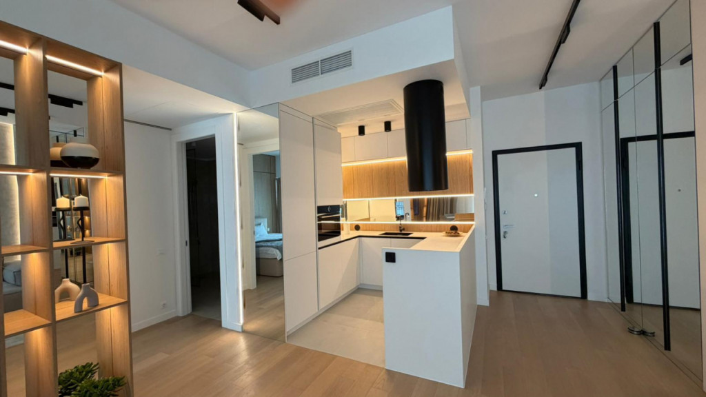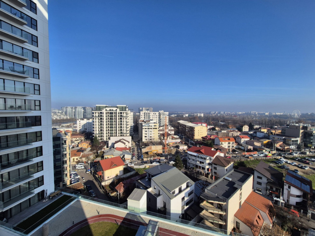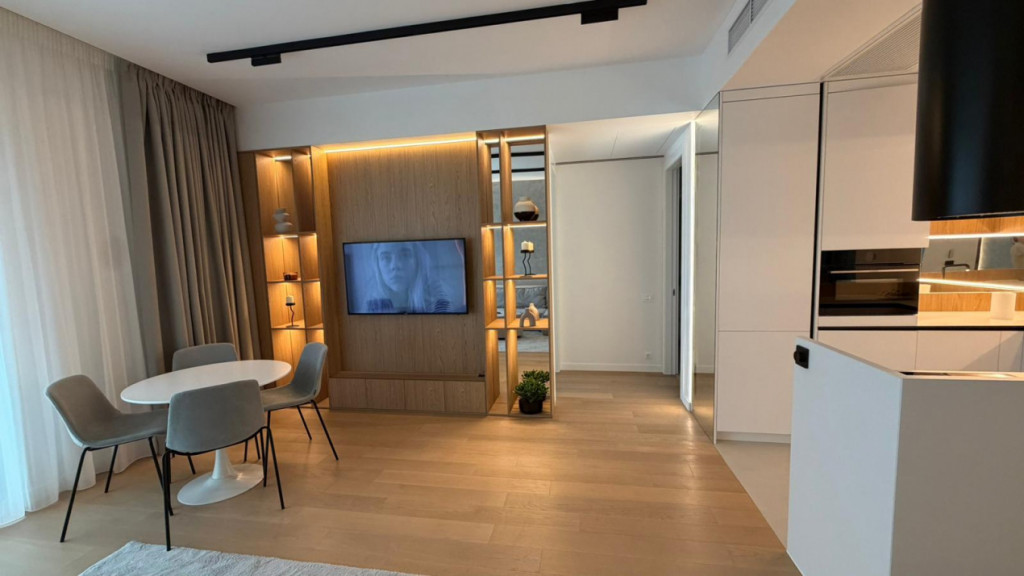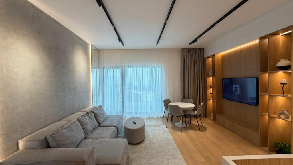 Apartament 2 camere de închiriat | One Verdi Park | Design arhitectural | Parcare subterană Vă propunem spre închiriere un apartament de 2 camere situat în prestigiosul complex One Verdi Park, un reper al locuirii contemporane din zona de nord a Bucureștiului. Apartamentul a fost integral proiectat de arhitect, fiecare detaliu fiind gândit pentru a crea un spațiu coerent, funcțional și elegant. Liniile curate, paleta cromatică atent aleasă și materialele premium se îmbină într-o atmosferă calmă, modernă și bine echilibrată. Zona de living, luminoasă și aerisită, este armonios conectată cu bucătăria complet mobilată și echipată, rezultând un spațiu ideal atât pentru relaxare, cât și pentru socializare. Dormitorul oferă intimitate și confort, cu soluții de depozitare integrate discret, iar baia completează ansamblul prin finisaje contemporane și obiecte sanitare de calitate superioară. Apartamentul beneficiază de loc de parcare subteran, inclus în preț, asigurând confort și siguranță suplimentară. Poziționarea în One Verdi Park oferă acces rapid către centre de business, restaurante, zone verzi și facilități urbane premium, fiind o alegere ideală pentru profesioniști sau cupluri care apreciază designul, calitatea și un stil de viață urban rafinat. Disponibil imediat Compartimentare eficientă Parcare subterană inclusă Id intern: P226505