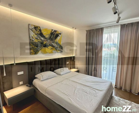 Bugra Imobiliare va ofera spre inchiriere un apartament de 2 camere, mobilat si utilat de lux, dotat cu finisaje si materiale premium, situat la etajul 2 al unui imobil nou construit de 5 etaje, eficient termic.