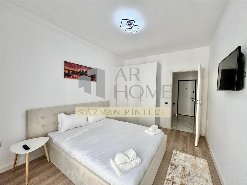 Inchiriere apartament 2 camere de lux, prima inchiriere, centrala termica, zona Nord, Ploiesti. Apartamentul face parte dintr-un ansamblu rezidential imprejmuit cu gard si acces restrictionat, paza umana la intrare si supraveghere video. Acesta este situat la etajul 4 al unui imobil cu structura S P 8E, izolat termic, dotat cu doua ascensoare, construit in anul 2025 pe cadre de beton armat si peretii din caramida. Suprafata utila este de 57mp, plus terasa cu suprafata de 7 mp. Incalzirea se realizeaza cu ajutorul centralei termice prin pardoseala, iar climatizarea se realizeaza cu ajutorul aparatului de aer conditionat. Dispune de urmatoarele finisaje si imbunatatiri moderne: gresie si faianta portelanata, parchet stratificat, usi interior din MDF, usa intrare antiefractie, tamplarie PVC cu geam tripan, centrala termica proprie. Se inchiriaza conform pozelor la pretul de 410 EURO plus depozit, iar parcarea este optionala, pretul fiind de 40 EURO lunar.