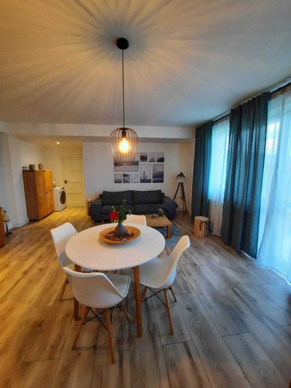 Excelenta prin experienta! Va oferim un apartament 2 camere de lux, mobilat-utilat in zona Brico-Depot. Compartimentarea interioara este de tip decomandat. Apartamentul este situat la etajul 1/4. Suprafata utila a apartamentului este de 64 mp, suprafata construita este 70 mp, confort: 1. Apartamentul are un living spatios de 34 mp in care se incadreaza zona de dinning si bucataria open-space, 3 mp, un dormitor, baie si balcon. Imobilul in care este amplasat apartamentul este un bloc de 4 etaje, construit in anul 2019. Utilitati: curent, apa, gaz, calorifere, centrala termica, internet prin cablu, wireless. Finisaje: stare interior-finisat ultramodern, parchet, gresie, faianta, tamplarie de profil PVC termopan, usa metalica la intrare, usi interior din lemn, baterii, instalatiile sanitara si electrica noi . Dotari: apometre, contor gaz, interfon. Apartamentul se ofera spre vanzare mobilat si utilat complet. Bucataria contine frigider, masina de spalat rufe, uscator rufe, masina de spalat vase, plita, cuptor si hota, corpuri de iluminat de la Volta. Accesorii: perdele, covoare, aparat de cafea Senseo, fierbator apa, vesela, uscator de par, fier de calcat. Are loc de parcare alocat. Va asteptam la vizionarea viitoarei dumneavoastra case! Clasa energetica: A Beneficiaza de serviciile TET: Oferte internationale in peste 15 tari (Cipru, Grecia, Muntenegru, Regatul Unit, Dubai) Servicii de asigurari Evaluari Autorizate ANEVAR Servicii Property Management De peste 15 ani alaturi de tine!