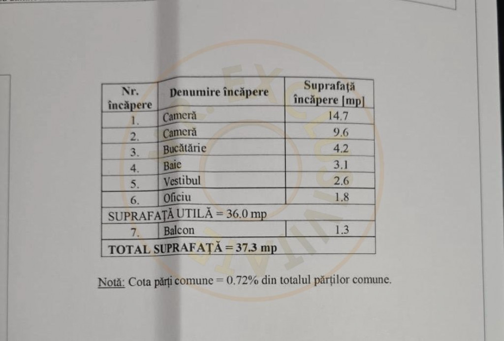 Suprafața utilă 36 m²