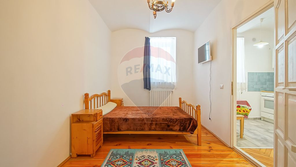 Vă propun spre vânzare, în reprezentare exclusivă și comision 0, un apartament de 2 camere, semidecomandat, cu o suprafață generoasă de 60 mp utili, situat într-o vilă impunătoare de pe Bulevardul 15 Noiembrie, una dintre cele mai bine cotate zone ale Brașovului. Cu o suprafață generoasă de 60 mp utili, spațiul a fost complet renovat, îmbinând detaliile tradiționale ale vilei cu finisaje moderne. Atmosferă caldă, stil, confort – toate bifate. Apartamentul este situat la demisol, însă vorbim despre un demisol înalt, cu ferestre ample și lumină naturală în fiecare încăpere – practic, se simte ca un parter confortabil, cu camere înalte și spațioase, nu ca un nivel inferior. Proprietatea a funcționat în regim hotelier și este ideală pentru continuarea acestui tip de exploatare. Situat pe Bulevardul 15 Noiembrie nr. 48, o arteră centrală ce leagă direct zona istorică de zona modernă a orașului, locația oferă un echilibru ideal între acces rapid, confort urban și proximitate față de obiectivele importante ale Brașovului. Puncte de interes în apropiere: -Centrul Istoric – la câteva minute de mers, acces ușor către Piața Sfatului, Strada Republicii și principalele atracții turistice -Centrul Civic & AFI Mall – foarte aproape, acces rapid la shopping, restaurante, cinema și servicii -Teatrul Sică Alexandrescu – în zonă - Școli, grădinițe, supermarketuri – toate la distanțe mici, ușor accesibile - Mijloace de transport în comun – stații la câțiva pași, conexiune eficientă cu întreg orașul Poziția ultracentrală îți oferă flux constant de turiști, acces facil la puncte de interes și un randament investițional excelent. Apartamentul se vinde complet mobilat și utilat, beneficiind de centrală termică nouă, mașină de spălat rufe, plită electrică, cuptor, astfel că este pregătit pentru mutare sau pentru continuarea activității în regim hotelier, fără investiții suplimentare. Pentru detalii suplimentare sau programarea unei vizionări, sunt la dispoziția dvs.