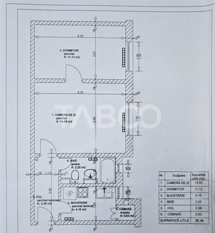 Suprafața utilă 37 m²