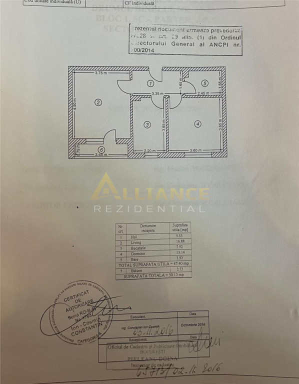Suprafața utilă 50 m²